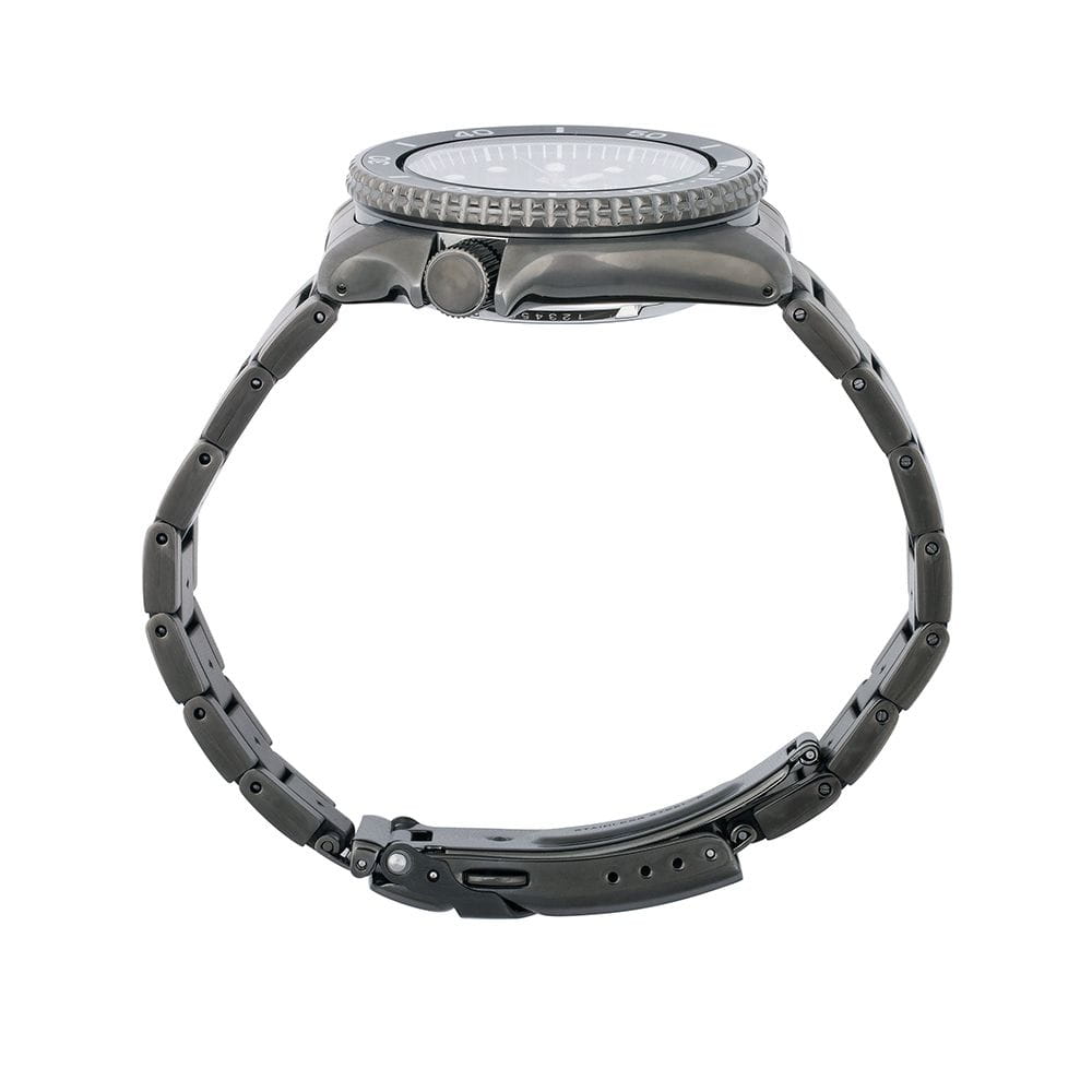 Часы Seiko 5 Sports SRPD65K1S сочетают в себе элегантный дизайн и надёжность, характерные для японского часового мастерства. Корпус диаметром 42,5 мм выполнен из нержавеющей стали с чёрным PVD-покрытиемPVDУльтратонкое покрытие наносится в технике вакуумного напыления, сочетает в себе нитрид титана особой прочности со слоем золота или оксида хрома. Несёт в себе декоративную или защитную функцию., придающим часам утончённый вид. Чёрный циферблат защищён минеральным стекломМинеральное стеклоМинеральное стекло представляет собой искусственно выращенный минерал кварца. Такое стекло отличается особой устойчивостью к повреждениям и царапинам. Уступает по некоторым качествам сапфировому стеклу. с повышенной прочностью.