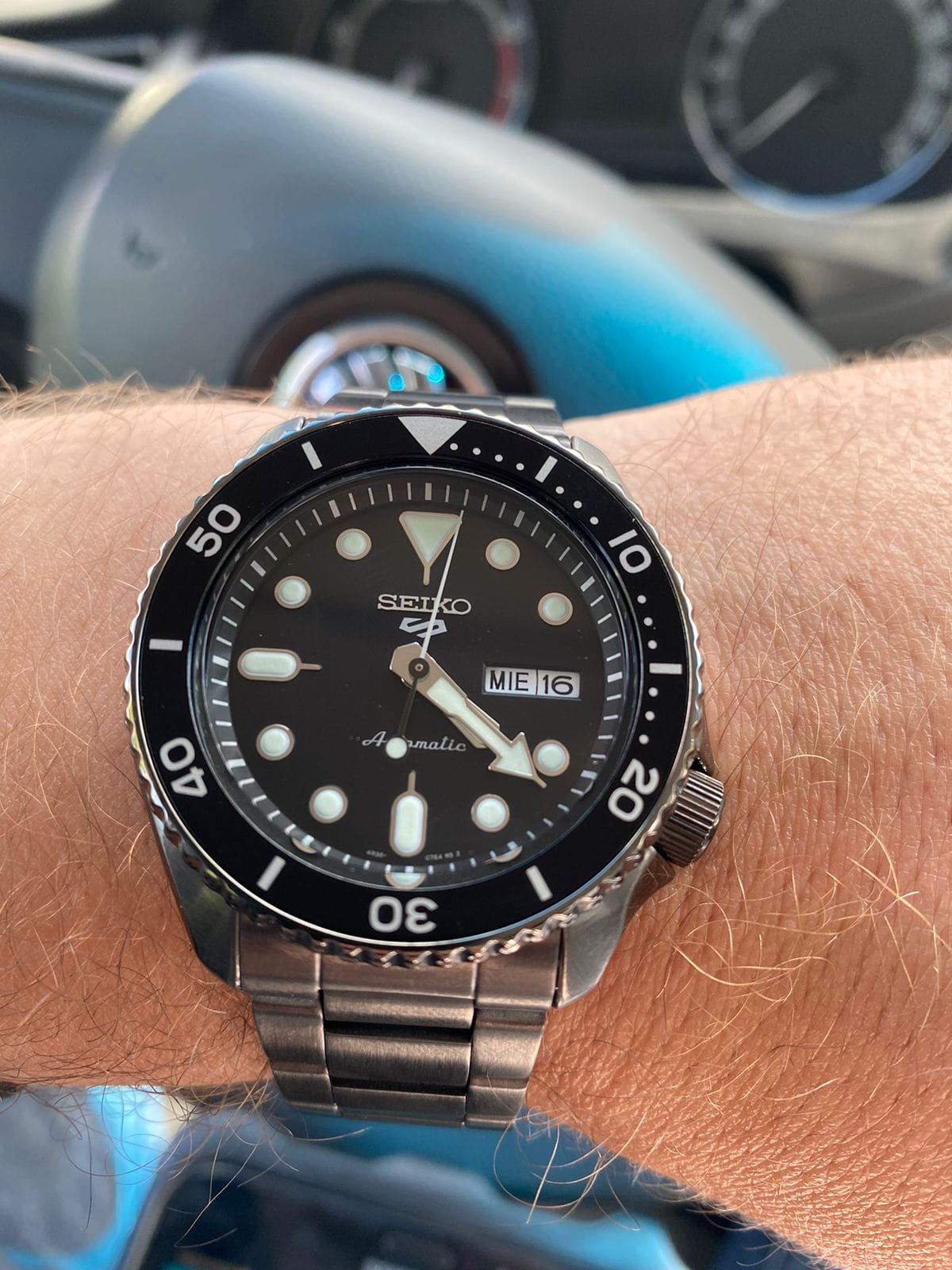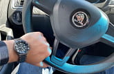 Водозащита 100 метров (10 бар) позволяет использовать часы для плавания и других водных видов спорта. Стальной браслет с чёрным PVD-покрытиемPVDУльтратонкое покрытие наносится в технике вакуумного напыления, сочетает в себе нитрид титана особой прочности со слоем золота или оксида хрома. Несёт в себе декоративную или защитную функцию. и раскладной застёжкойРаскладная застёжкаТакой тип застёжки используется только на браслетах из металла. Она никогда не раскрывается полностью, происходит разделение на 2 и более частей. Раскладывающая застёжка снизит вероятность потери часов к минимуму. обеспечивает комфортное ношение и надёжную фиксацию на запястье.