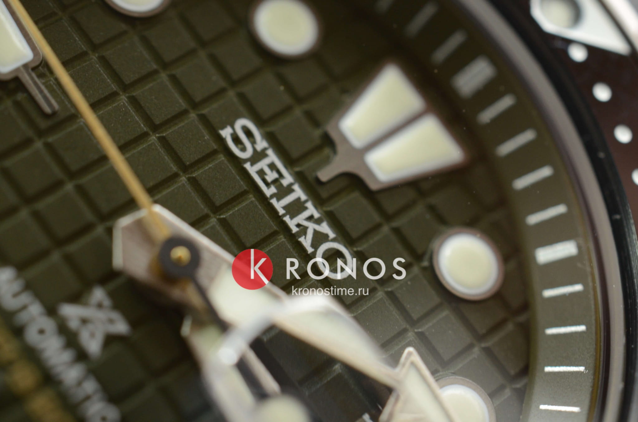 Seiko Prospex SRPE05K1 — профессиональная дайверская модель, созданная для надёжной работы в экстремальных условиях. Корпус диаметром 45 мм выполнен из нержавеющей стали с защитной «черепахообразной» формой, а односторонний вращающийся безельБезельВнешний ободок, закрепляющий стекло. В спортивных часах так называется поворотное кольцо с делениями на циферблате, выполняет роль таймера – замеряет отрезки времени на шкале. Неподвижный безель – элемент декора. Однонаправленно вращающийся безель на дайверских часах позволяет фиксировать моменты погружения и выныривания на поверхность. с PVD-покрытиемPVDУльтратонкое покрытие наносится в технике вакуумного напыления, сочетает в себе нитрид титана особой прочности со слоем золота или оксида хрома. Несёт в себе декоративную или защитную функцию. с минутной разметкой позволяет контролировать время погружения. Защитную функцию выполняет сапфировое стеклоСапфировое стеклоПрочный и надёжный материал из кристалла сапфира синтетического происхождения, характеризующийся особой твёрдостью и устойчивостью к царапинам и повреждениям. с увеличительной линзой над апертурой даты и дня недели в позиции «3 часа». В основе лежит автоматический механизм калибра 4R36 с функциями часов, минут, секунд, даты и дня недели, а также возможностью ручного завода и стоп-секундой. Водозащита 200 м (20 бар) соответствует профессиональным стандартам ISO для дайверских часов. Крупные стрелки и метки покрыты люминесцентным покрытиемЛюминесцентное покрытиеПозволяет считывать показания времени в темноте. Производители наносят на стрелки, часовые индексы, безель или поверхность циферблата светонакопительный состав, дающий холодное свечение., что обеспечивает превосходную читаемость под водой и в темноте. Часы комплектуются каучуковым ремешком с классической застёжкой, который гарантирует комфорт и устойчивость к влаге.