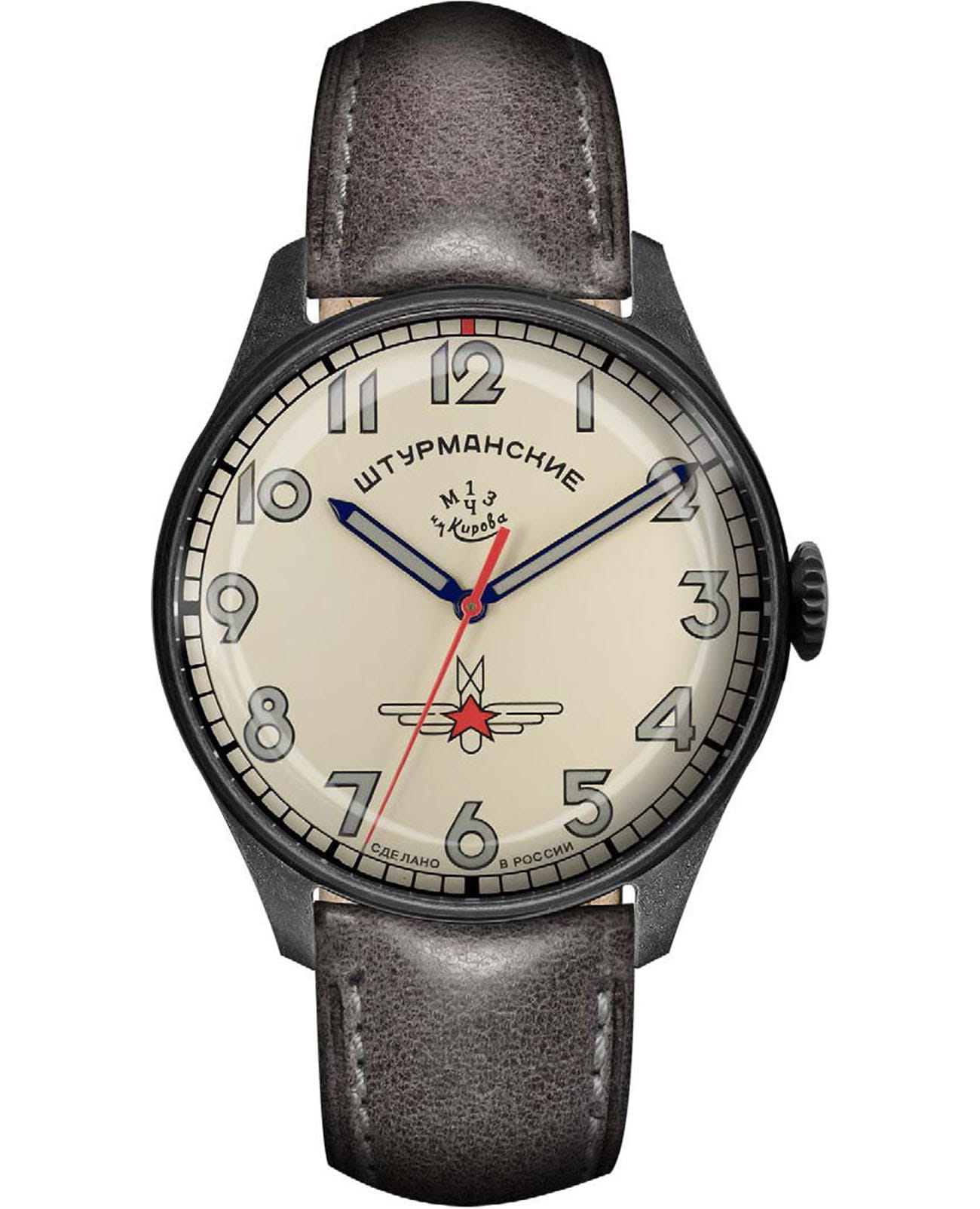 Лимитированные мужские российские механические часы Штурманские Гагарин Наследие 2609/3700477, механический механизм (автоматический калибр) с высокой точностью. Минеральное стеклоМинеральное стеклоМинеральное стекло представляет собой искусственно выращенный минерал кварца. Такое стекло отличается особой устойчивостью к повреждениям и царапинам. Уступает по некоторым качествам сапфировому стеклу. устойчивое к мелким механическим повреждениям.. Класс водозащиты: 50 метров, позволит защитить корпус от случайных брызг или капель дождя. Корпус часов изготовлен из стали с PVD-покрытиемPVDУльтратонкое покрытие наносится в технике вакуумного напыления, сочетает в себе нитрид титана особой прочности со слоем золота или оксида хрома. Несёт в себе декоративную или защитную функцию.. Кожаный ремешок на стандартной застёжке. Стрелки и метки с люминесцентным покрытиемЛюминесцентное покрытиеПозволяет считывать показания времени в темноте. Производители наносят на стрелки, часовые индексы, безель или поверхность циферблата светонакопительный состав, дающий холодное свечение.. Задняя крышка с барельефом Гагарина. Чёткая, читаемая минутная шкала уходит за приделы видимой области циферблата, подчёркивая изящность ободка корпуса. Оцифровка циферблата – отличительная особенность данной модели, её дизайн не изменился с самой первый, гагаринской серии. Заводная головка конической формы с удобной насечкой повторяет дизайн оригинальной модели.