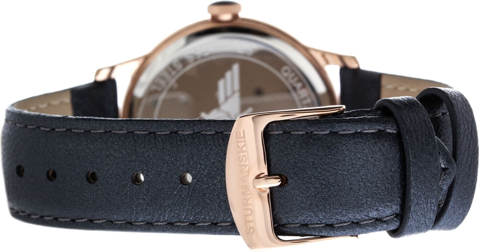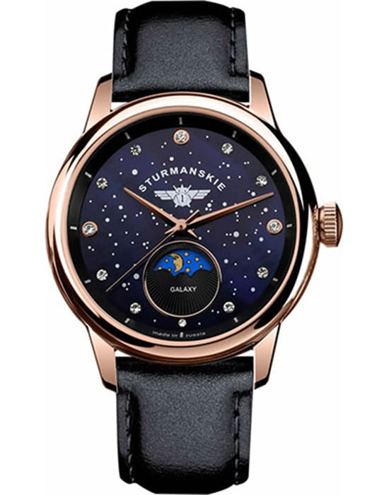 Женские российские кварцевые часы Штурманские 9231/5369194, с высокой точностью. Минеральное стеклоМинеральное стеклоМинеральное стекло представляет собой искусственно выращенный минерал кварца. Такое стекло отличается особой устойчивостью к повреждениям и царапинам. Уступает по некоторым качествам сапфировому стеклу. устойчивое к мелким механическим повреждениям. Класс водозащиты: 30 метров, позволит защитить корпус от случайных брызг или капель дождя. Корпус часов изготовлен из стали с IP-покрытиемIP-покрытиеМетод ионного напыления. Демонстрирует повышенную устойчивость к истиранию, окислению и химическим веществам. Под воздействием высокого давления и температуры около 1500°C молекулы металла надёжно соединяются с частицами корпуса часов.. Кожаный ремешок на стандартной застёжке. Чёткая, читаемая минутная шкала уходит за приделы видимой области циферблата, подчёркивая изящность ободка корпуса. Стрелки и метки с люминесцентным покрытиемЛюминесцентное покрытиеПозволяет считывать показания времени в темноте. Производители наносят на стрелки, часовые индексы, безель или поверхность циферблата светонакопительный состав, дающий холодное свечение.. В положении 6 часов календарь фаз луны.
