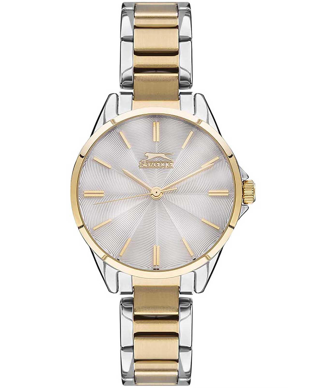 Slazenger SL.09.2023.3.03 – элегантные женские часы, сочетающие стильный дизайн и функциональность. Корпус диаметром 36 мм и толщиной 9 мм выполнен из суперметалла, обеспечивающего прочность и долговечность. Циферблат защищён минеральным стекломМинеральное стеклоМинеральное стекло представляет собой искусственно выращенный минерал кварца. Такое стекло отличается особой устойчивостью к повреждениям и царапинам. Уступает по некоторым качествам сапфировому стеклу., устойчивым к царапинам. БезельБезельВнешний ободок, закрепляющий стекло. В спортивных часах так называется поворотное кольцо с делениями на циферблате, выполняет роль таймера – замеряет отрезки времени на шкале. Неподвижный безель – элемент декора. Однонаправленно вращающийся безель на дайверских часах позволяет фиксировать моменты погружения и выныривания на поверхность. с PVD-покрытиемPVDУльтратонкое покрытие наносится в технике вакуумного напыления, сочетает в себе нитрид титана особой прочности со слоем золота или оксида хрома. Несёт в себе декоративную или защитную функцию.. Часы оснащены точным кварцевым механизмом, обеспечивающим надёжное отображение времени. Браслет из суперметалла с PVD-покрытиемPVDУльтратонкое покрытие наносится в технике вакуумного напыления, сочетает в себе нитрид титана особой прочности со слоем золота или оксида хрома. Несёт в себе декоративную или защитную функцию. шириной 16 мм оснащён раскладной застёжкойРаскладная застёжкаТакой тип застёжки используется только на браслетах из металла. Она никогда не раскрывается полностью, происходит разделение на 2 и более частей. Раскладывающая застёжка снизит вероятность потери часов к минимуму., обеспечивающей комфортное ношение и надёжную фиксацию на запястье. Водозащита до 30 метров (3 ATM) защищает часы от случайных брызг и дождя, делая их подходящими для повседневного использования.