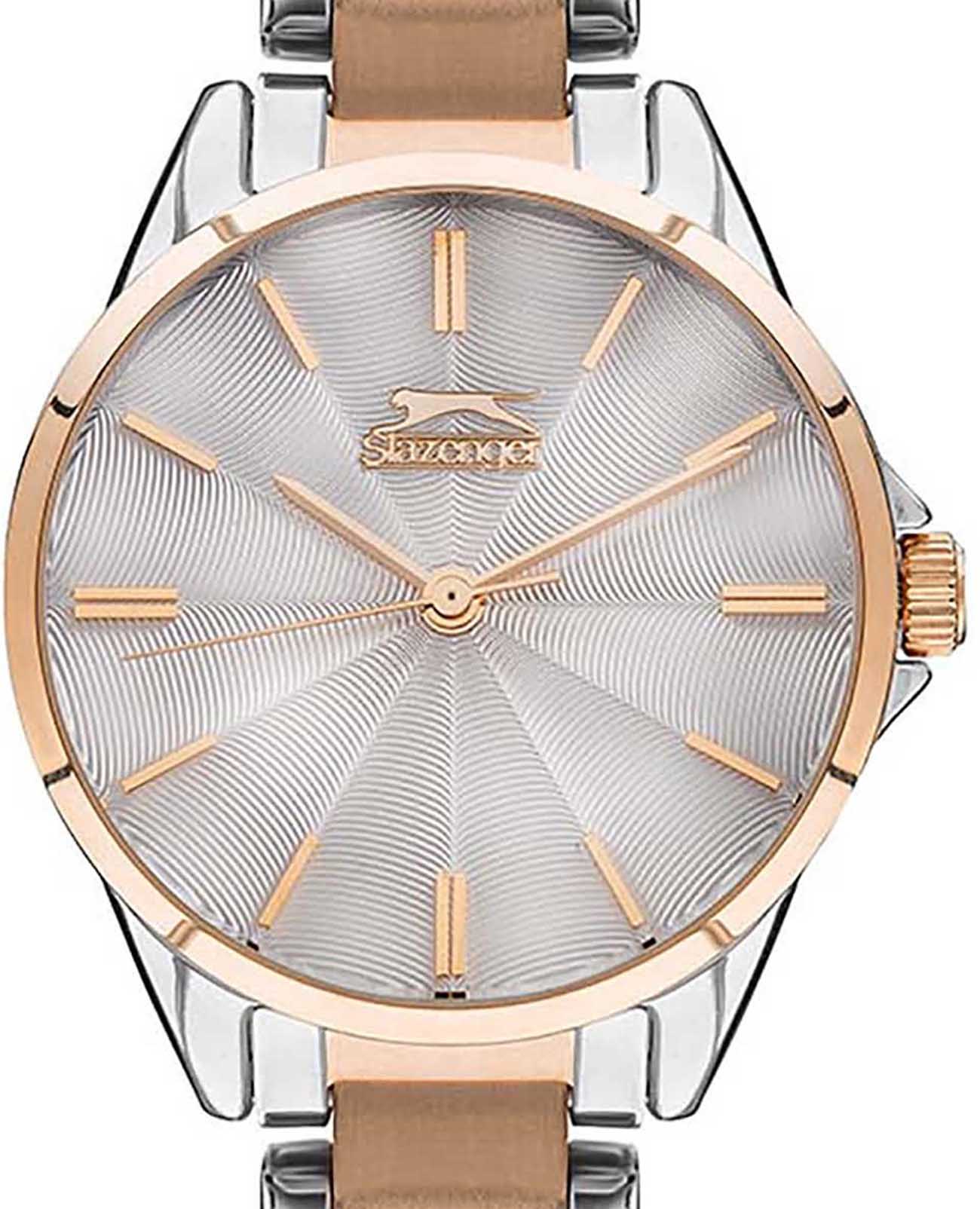 Slazenger SL.09.2023.3.04 – элегантные женские часы, сочетающие стильный дизайн и функциональность. Корпус диаметром 36 мм и толщиной 9 мм выполнен из суперметалла, обеспечивающего прочность и долговечность. Циферблат защищён минеральным стекломМинеральное стеклоМинеральное стекло представляет собой искусственно выращенный минерал кварца. Такое стекло отличается особой устойчивостью к повреждениям и царапинам. Уступает по некоторым качествам сапфировому стеклу., устойчивым к царапинам. БезельБезельВнешний ободок, закрепляющий стекло. В спортивных часах так называется поворотное кольцо с делениями на циферблате, выполняет роль таймера – замеряет отрезки времени на шкале. Неподвижный безель – элемент декора. Однонаправленно вращающийся безель на дайверских часах позволяет фиксировать моменты погружения и выныривания на поверхность. с PVD-покрытиемPVDУльтратонкое покрытие наносится в технике вакуумного напыления, сочетает в себе нитрид титана особой прочности со слоем золота или оксида хрома. Несёт в себе декоративную или защитную функцию.. Часы оснащены точным кварцевым механизмом, обеспечивающим надёжное отображение времени. Браслет из суперметалла с PVD-покрытиемPVDУльтратонкое покрытие наносится в технике вакуумного напыления, сочетает в себе нитрид титана особой прочности со слоем золота или оксида хрома. Несёт в себе декоративную или защитную функцию. шириной 16 мм оснащён раскладной застёжкойРаскладная застёжкаТакой тип застёжки используется только на браслетах из металла. Она никогда не раскрывается полностью, происходит разделение на 2 и более частей. Раскладывающая застёжка снизит вероятность потери часов к минимуму., обеспечивающей комфортное ношение и надёжную фиксацию на запястье. Водозащита до 30 метров (3 ATM) защищает часы от случайных брызг и дождя, делая их подходящими для повседневного использования.