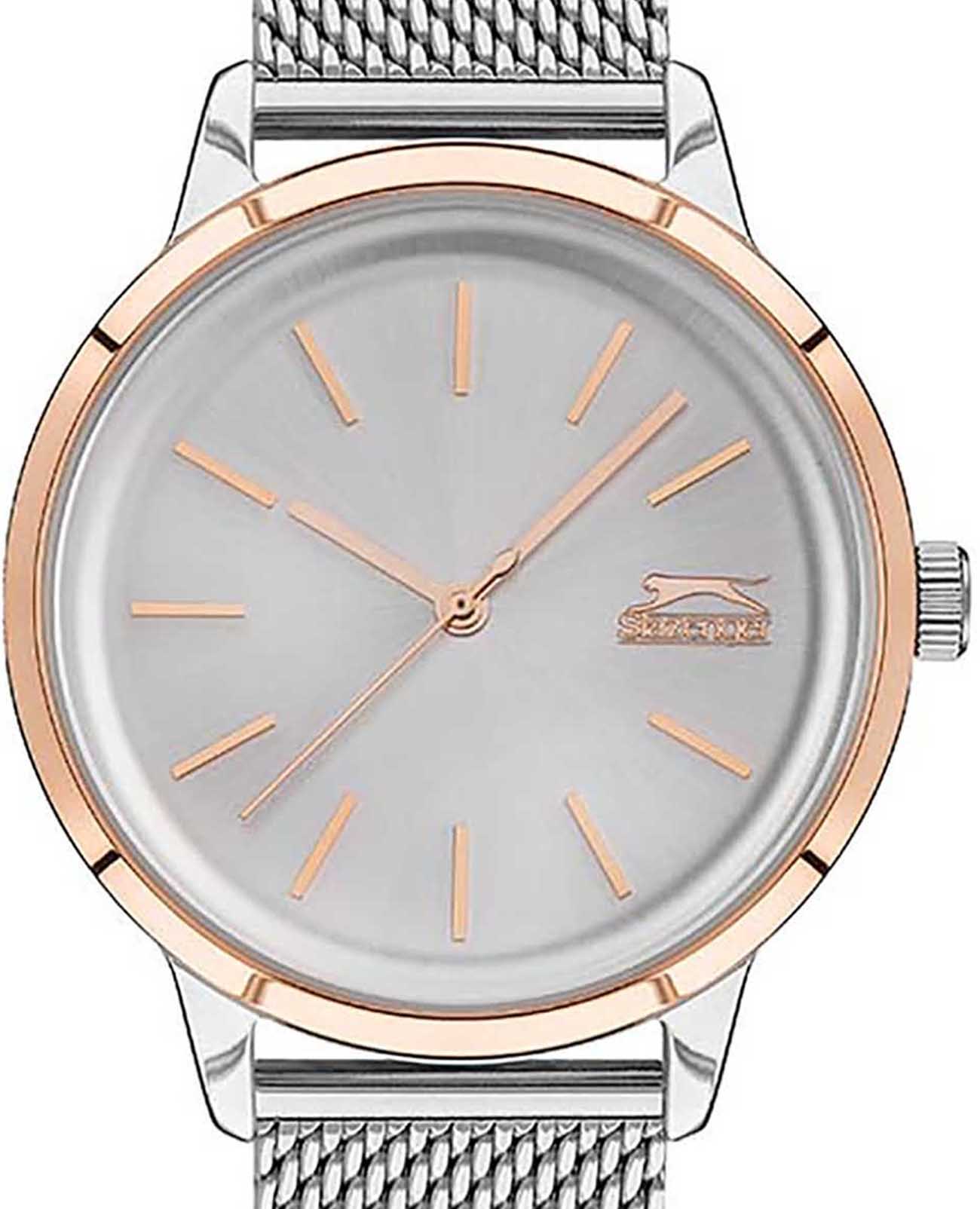 Slazenger SL.09.2028.3.04 – элегантные женские часы, сочетающие стильный дизайн и функциональность. Корпус диаметром 36 мм и толщиной 9 мм выполнен из суперметалла, обеспечивающего прочность и долговечность. Циферблат защищён минеральным стекломМинеральное стеклоМинеральное стекло представляет собой искусственно выращенный минерал кварца. Такое стекло отличается особой устойчивостью к повреждениям и царапинам. Уступает по некоторым качествам сапфировому стеклу., устойчивым к царапинам. БезельБезельВнешний ободок, закрепляющий стекло. В спортивных часах так называется поворотное кольцо с делениями на циферблате, выполняет роль таймера – замеряет отрезки времени на шкале. Неподвижный безель – элемент декора. Однонаправленно вращающийся безель на дайверских часах позволяет фиксировать моменты погружения и выныривания на поверхность. с IP-покрытиемIP-покрытиеМетод ионного напыления. Демонстрирует повышенную устойчивость к истиранию, окислению и химическим веществам. Под воздействием высокого давления и температуры около 1500°C молекулы металла надёжно соединяются с частицами корпуса часов.. Часы оснащены точным кварцевым механизмом, обеспечивающим надёжное отображение времени. Браслет из суперметалла миланского плетения на раскладном замкеРаскладной замокДанный вариант застежки используется только на часах с металлическим браслетом. Отличительная особенность такого крепления в том, что длина браслета становится универсальной и вы можете самостоятельно отрегулировать нужный вам размер – застежка просто двигается по браслету часов., обеспечивающей комфортное ношение и надёжную фиксацию на запястье. Водозащита до 30 метров (3 ATM) защищает часы от случайных брызг и дождя, делая их подходящими для повседневного использования.