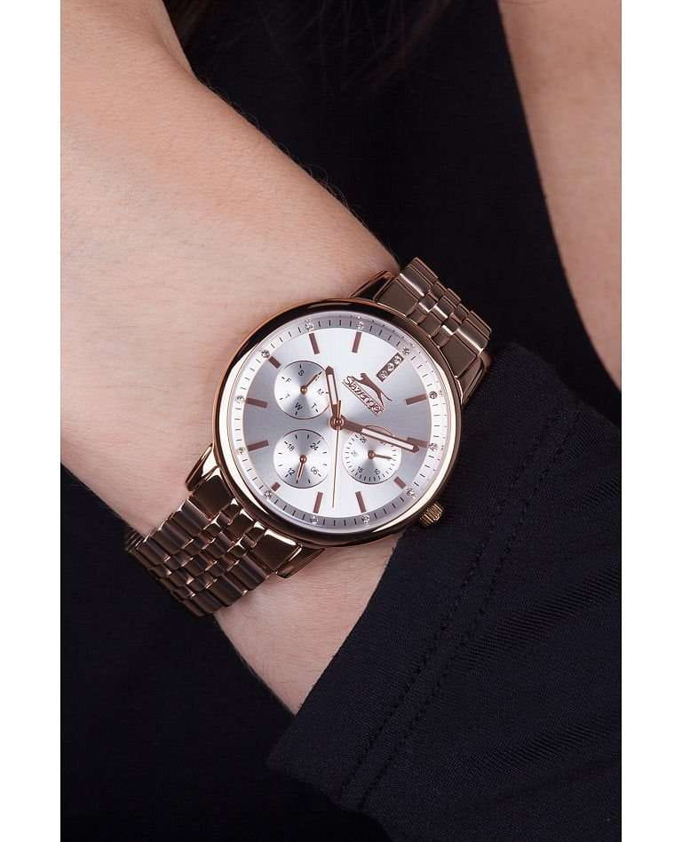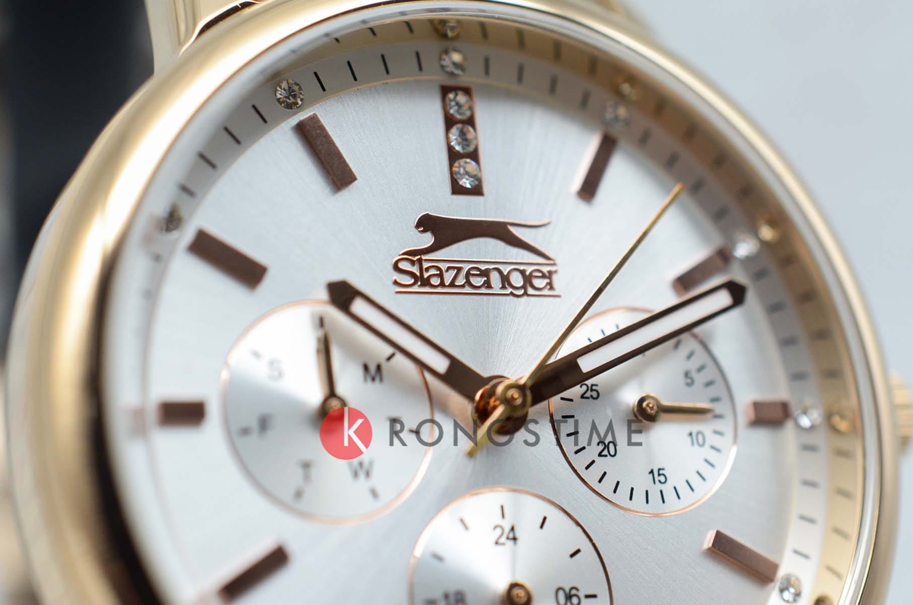 Часы Slazenger SL.09.2050.4.02 — это элегантное сочетание стиля и функциональности, созданное специально для женщин. Их изысканный серебристый циферблат и корпус с безелемБезельВнешний ободок, закрепляющий стекло. В спортивных часах так называется поворотное кольцо с делениями на циферблате, выполняет роль таймера – замеряет отрезки времени на шкале. Неподвижный безель – элемент декора. Однонаправленно вращающийся безель на дайверских часах позволяет фиксировать моменты погружения и выныривания на поверхность. из суперметалла с IP-покрытиемIP-покрытиеМетод ионного напыления. Демонстрирует повышенную устойчивость к истиранию, окислению и химическим веществам. Под воздействием высокого давления и температуры около 1500°C молекулы металла надёжно соединяются с частицами корпуса часов. придают часам современный и утонченный вид. Внутри скрыт надежный кварцевый механизм, который гарантирует точность и долговечность. Минеральное стеклоМинеральное стеклоМинеральное стекло представляет собой искусственно выращенный минерал кварца. Такое стекло отличается особой устойчивостью к повреждениям и царапинам. Уступает по некоторым качествам сапфировому стеклу. защищает часы от царапин, а украшение из фианитов добавляет изысканный акцент. Люминесцентное покрытиеЛюминесцентное покрытиеПозволяет считывать показания времени в темноте. Производители наносят на стрелки, часовые индексы, безель или поверхность циферблата светонакопительный состав, дающий холодное свечение. на стрелках позволяют легко считывать время даже в темноте. Функциональность часов дополнена 24-часовым указателем времени, календарем даты и дня недели. Браслет из суперметалла с IP-покрытиемIP-покрытиеМетод ионного напыления. Демонстрирует повышенную устойчивость к истиранию, окислению и химическим веществам. Под воздействием высокого давления и температуры около 1500°C молекулы металла надёжно соединяются с частицами корпуса часов. и раскладной застёжкойРаскладная застёжкаТакой тип застёжки используется только на браслетах из металла. Она никогда не раскрывается полностью, происходит разделение на 2 и более частей. Раскладывающая застёжка снизит вероятность потери часов к минимуму. подчеркивает женственность дизайна и обеспечивает комфорт в носке. Диаметр корпуса составляет 35 мм, а толщина — 9 мм, что делает их идеальным аксессуаром для любой стильной женщины. Водозащита уровня 3 ATM позволяет не беспокоиться о случайных брызгах.