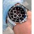 Мужские наручные часы Slazenger SL.09.2091.2.01 сочетают в себе классический дизайн и надежность современных технологий. Модель обладает круглым корпусом диаметром 44 мм, изготовленным из суперметалла, что обеспечивает высокую устойчивость к внешним воздействиям. Браслет выполнен из стали с раскладной застежкойРаскладной замокДанный вариант застежки используется только на часах с металлическим браслетом. Отличительная особенность такого крепления в том, что длина браслета становится универсальной и вы можете самостоятельно отрегулировать нужный вам размер – застежка просто двигается по браслету часов., гарантирующей комфортное ношение и безопасность. Циферблат черного цвета декорирован стрелками с люминесцентным покрытиемЛюминесцентное покрытиеПозволяет считывать показания времени в темноте. Производители наносят на стрелки, часовые индексы, безель или поверхность циферблата светонакопительный состав, дающий холодное свечение., которые обеспечивают читаемость времени даже при недостаточной освещенности. Для защиты используется минеральное стеклоМинеральное стеклоМинеральное стекло представляет собой искусственно выращенный минерал кварца. Такое стекло отличается особой устойчивостью к повреждениям и царапинам. Уступает по некоторым качествам сапфировому стеклу., обеспечивающее прочную защиту от царапин. Часы работают на кварцевом механизме, что гарантирует точное время без необходимости подзаводки. Модель также оснащена дополнительными функциями, делая ее практичной для повседневного использования. Водонепроницаемость часов достигает 5 атмосфер (WR50), что позволяет использовать их во время плавания, однако они не предназначены для дайвинга или других водных видов спорта. Вес модели составляет 143 грамма, а производитель предоставляет гарантию сроком 12 месяцев. SL.09.2091.2.01 — это стильный аксессуар, который станет отличным дополнением как формального, так и casual образа мужчины.