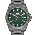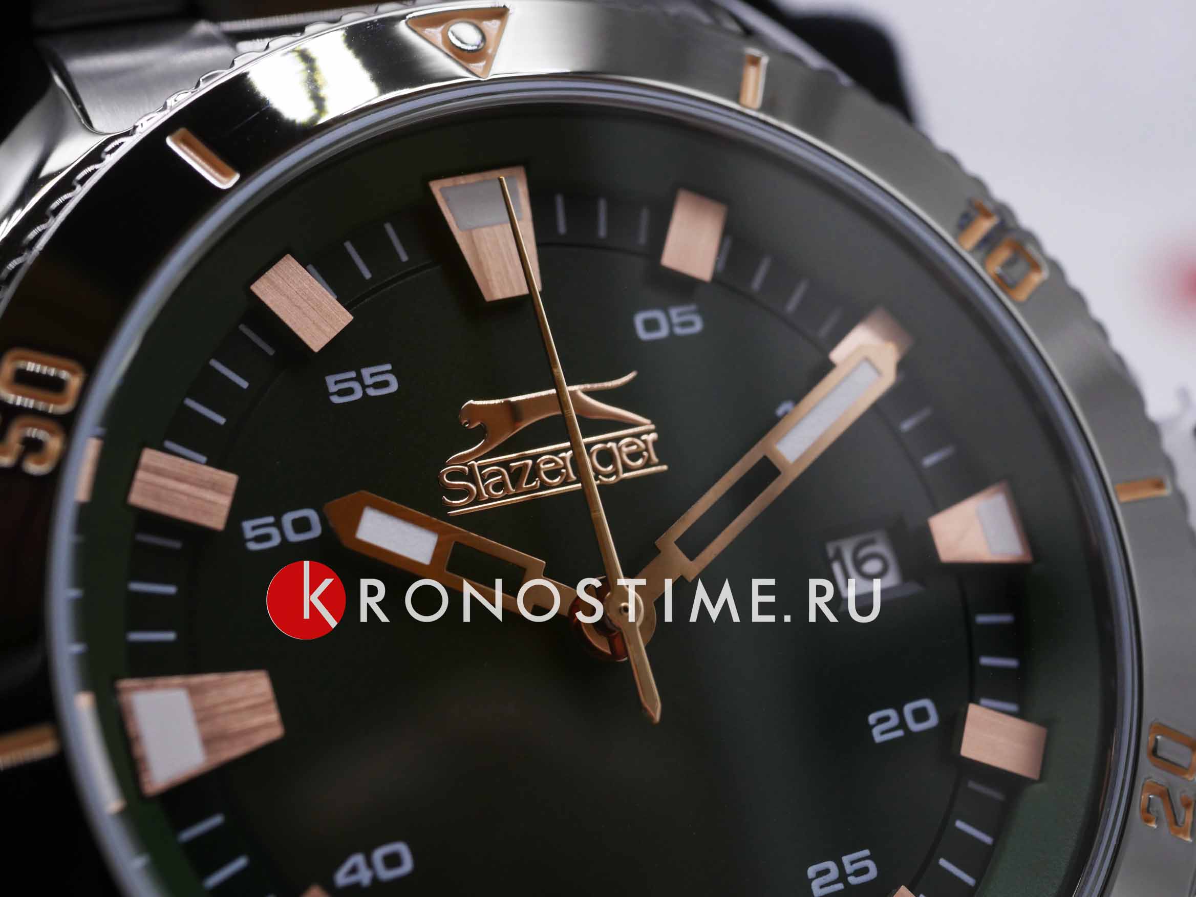 Мужские наручные часы Slazenger SL.09.2114.2.02 сочетают в себе классический дизайн и надежность современных технологий. Модель обладает круглым корпусом диаметром 44 мм. Корпус и браслет изготовлены из суперметалла с IP-покрытиемIP-покрытиеМетод ионного напыления. Демонстрирует повышенную устойчивость к истиранию, окислению и химическим веществам. Под воздействием высокого давления и температуры около 1500°C молекулы металла надёжно соединяются с частицами корпуса часов., что обеспечивает высокую устойчивость к внешним воздействиям. Браслет выполнен с раскладной застежкойРаскладной замокДанный вариант застежки используется только на часах с металлическим браслетом. Отличительная особенность такого крепления в том, что длина браслета становится универсальной и вы можете самостоятельно отрегулировать нужный вам размер – застежка просто двигается по браслету часов., гарантирующей комфортное ношение и безопасность. Циферблат декорирован стрелками с люминесцентным покрытиемЛюминесцентное покрытиеПозволяет считывать показания времени в темноте. Производители наносят на стрелки, часовые индексы, безель или поверхность циферблата светонакопительный состав, дающий холодное свечение., которые обеспечивают читаемость времени даже в условиях недостаточной освещенности. Для защиты используется минеральное стеклоМинеральное стеклоМинеральное стекло представляет собой искусственно выращенный минерал кварца. Такое стекло отличается особой устойчивостью к повреждениям и царапинам. Уступает по некоторым качествам сапфировому стеклу., обеспечивающее прочную защиту от царапин. Поворотный безельБезельВнешний ободок, закрепляющий стекло. В спортивных часах так называется поворотное кольцо с делениями на циферблате, выполняет роль таймера – замеряет отрезки времени на шкале. Неподвижный безель – элемент декора. Однонаправленно вращающийся безель на дайверских часах позволяет фиксировать моменты погружения и выныривания на поверхность.. Часы работают на кварцевом механизме, что гарантирует точное время без необходимости подзаводки. Модель также оснащена функцией отображения даты, делая ее практичной для повседневного использования. Водонепроницаемость часов достигает 5 атмосфер (WR50), что позволяет использовать их во время плавания, однако они не предназначены для дайвинга или других водных видов спорта.