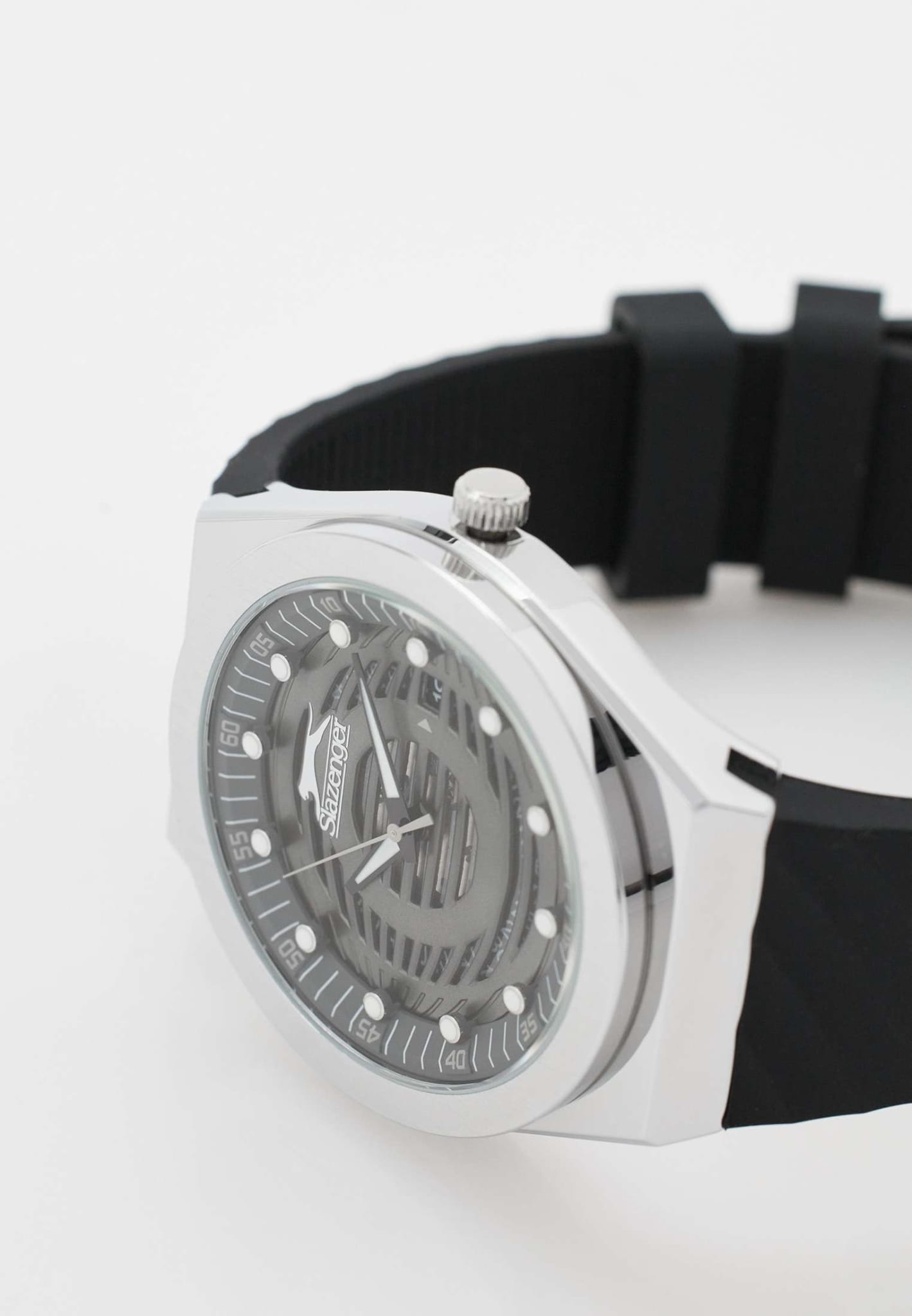 Стильные наручные часы Slazenger SL.09.2221.1.01 сочетают современный дизайн и надежность, идеально подходя для активного образа жизни. Корпус диаметром 44 мм изготовлен из прочного металла и дополнен устойчивым к царапинам минеральным стекломМинеральное стеклоМинеральное стекло представляет собой искусственно выращенный минерал кварца. Такое стекло отличается особой устойчивостью к повреждениям и царапинам. Уступает по некоторым качествам сапфировому стеклу.. Черный ремешок из мягкого силикона удобно сидит на запястье и фиксируется классической застежкой. Кварцевый механизм обеспечивает точность хода, а водозащита уровня WR 50 позволяет не беспокоиться о воздействии влаги в повседневных ситуациях. Модель оснащена функцией отображения даты в отдельном окошке. Стрелки снабжены люминесцентным покрытиемЛюминесцентное покрытиеПозволяет считывать показания времени в темноте. Производители наносят на стрелки, часовые индексы, безель или поверхность циферблата светонакопительный состав, дающий холодное свечение., что позволяет легко считывать время в темноте. Часы весят всего 82 грамма, что делает их легкими и комфортными для ежедневного ношения Эти часы станут отличным выбором для тех, кто ценит качество, практичность и современный стиль.