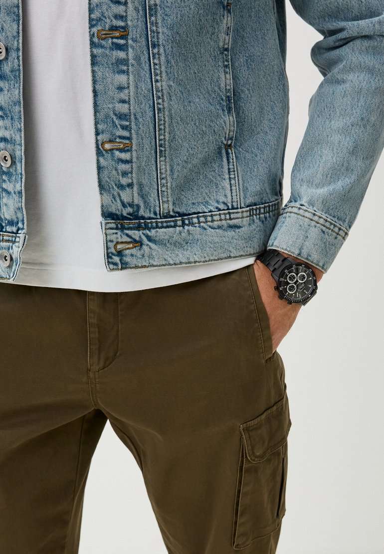 Часы Slazenger SL.09.2260.2.05 сочетают в себе выразительный дизайн и практичность, делая их отличным выбором для современного мужчины. Корпус и браслет выполнены из суперметалла с черным IP-покрытиеIP-покрытиеМетод ионного напыления. Демонстрирует повышенную устойчивость к истиранию, окислению и химическим веществам. Под воздействием высокого давления и температуры около 1500°C молекулы металла надёжно соединяются с частицами корпуса часов. — прочного сплава на основе меди с низким содержанием цинка и никеля, что обеспечивает долговечность изделия. На безельБезельВнешний ободок, закрепляющий стекло. В спортивных часах так называется поворотное кольцо с делениями на циферблате, выполняет роль таймера – замеряет отрезки времени на шкале. Неподвижный безель – элемент декора. Однонаправленно вращающийся безель на дайверских часах позволяет фиксировать моменты погружения и выныривания на поверхность. нанесено черное IP-покрытиеIP-покрытиеМетод ионного напыления. Демонстрирует повышенную устойчивость к истиранию, окислению и химическим веществам. Под воздействием высокого давления и температуры около 1500°C молекулы металла надёжно соединяются с частицами корпуса часов., что придает аксессуару утончённый и универсальный внешний вид. Модель оснащена точным кварцевым механизмом, защищённым минеральным стекломМинеральное стеклоМинеральное стекло представляет собой искусственно выращенный минерал кварца. Такое стекло отличается особой устойчивостью к повреждениям и царапинам. Уступает по некоторым качествам сапфировому стеклу.. На черном циферблате размещены дополнительные индикаторы: 24-часовой формат времени, дата и день недели. Класс водозащиты 5 бар позволяет не беспокоиться о брызгах и дожде. Диаметр корпуса составляет 45 мм, толщина — 12 мм, что придаёт часам солидный и современный вид. Стрелки с люминесцентным покрытиемЛюминесцентное покрытиеПозволяет считывать показания времени в темноте. Производители наносят на стрелки, часовые индексы, безель или поверхность циферблата светонакопительный состав, дающий холодное свечение. удобно подсвечиваются в темноте после зарядки на свету. Стальной браслет с раскладной застёжкойРаскладная застёжкаТакой тип застёжки используется только на браслетах из металла. Она никогда не раскрывается полностью, происходит разделение на 2 и более частей. Раскладывающая застёжка снизит вероятность потери часов к минимуму. обеспечивает комфортную посадку. Модель станет надёжным спутником как на каждый день, так и для особых случаев, а также превосходно подойдёт в качестве подарка. Гарантия от производителя — 12 месяцев.