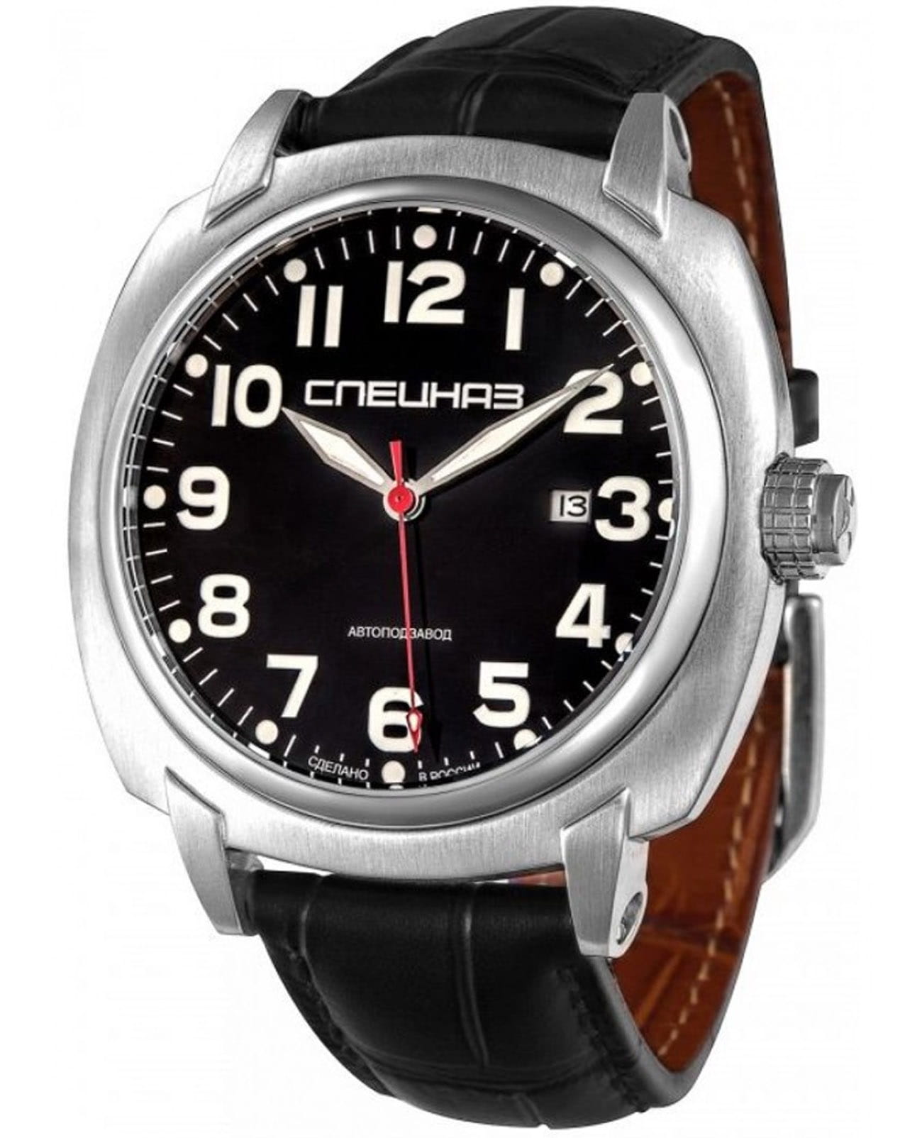 Часы Спецназ "Профессионал" С9060369-8215 сочетают в себе надёжность и функциональность, характерные для профессиональных моделей. Корпус диаметром 46 мм выполнен из нержавеющей стали, а чёрный циферблат защищён минеральным стекломМинеральное стеклоМинеральное стекло представляет собой искусственно выращенный минерал кварца. Такое стекло отличается особой устойчивостью к повреждениям и царапинам. Уступает по некоторым качествам сапфировому стеклу..