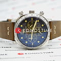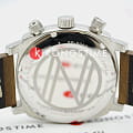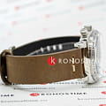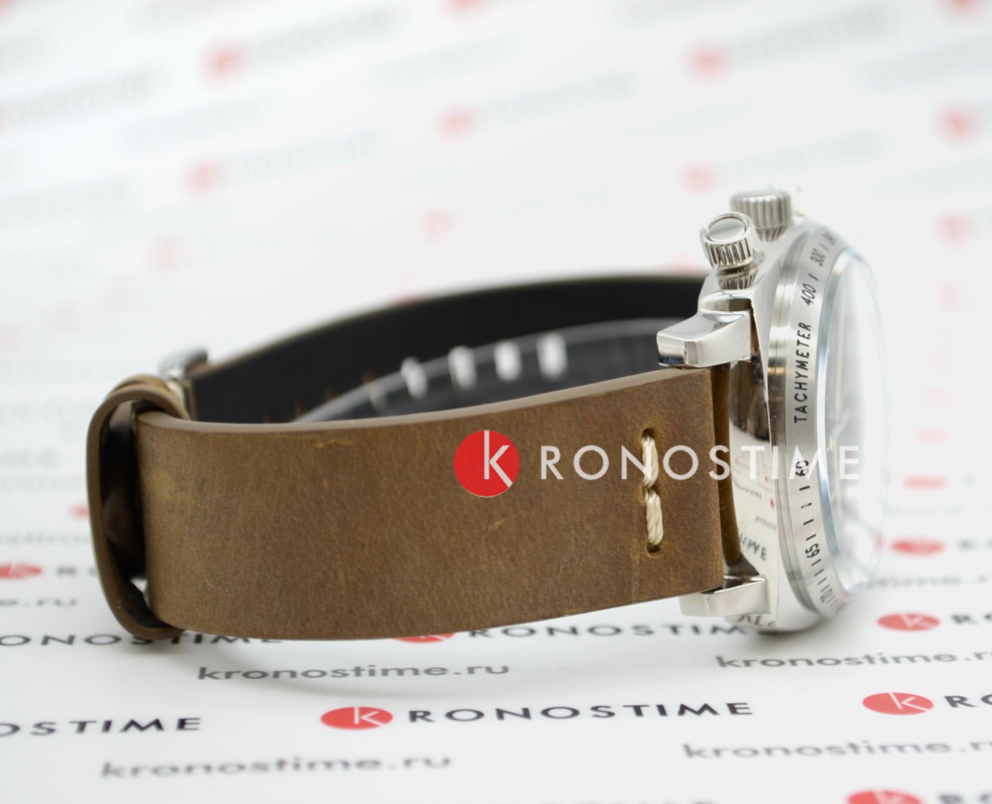 Мужской кварцевый хронографХронографФункция позволяет измерять отрезки времени с особой точностью: часы, минуты, секунды. Верным признаком хронографа является наличие на циферблате 3 дополнительных окошек-счётчиков. с секундомеромСекундомерСекундоме́р — прибор, способный измерять интервалы времени с точностью до долей секунды. и тахиметромТахиметрРазмеченная шкала, располагается на ободке или безеле часов. Тахиметр позволяет рассчитать скорость на определённом участке пути, расстояние измеряется в километрах или милях.. Калибр механизма TMI VK73. Центральные часовая и минутная стрелки, секундная стрелка вынесена на малый циферблат. Большая дата в позиции 12 часов. 12/24х часовой формат времени. Корпус выполнен из нержавеющей стали. Коричневый кожаный ремешок шириной 22 мм, стандартная застежка. Циферблат с люминесцентным покрытиемЛюминесцентное покрытиеПозволяет считывать показания времени в темноте. Производители наносят на стрелки, часовые индексы, безель или поверхность циферблата светонакопительный состав, дающий холодное свечение. стрелок и меток, дополнен выпуклым минеральным стекломМинеральное стеклоМинеральное стекло представляет собой искусственно выращенный минерал кварца. Такое стекло отличается особой устойчивостью к повреждениям и царапинам. Уступает по некоторым качествам сапфировому стеклу. , устойчивым к мелким механическим повреждениям. Водостойкость WR 100 (плавание без погружения).