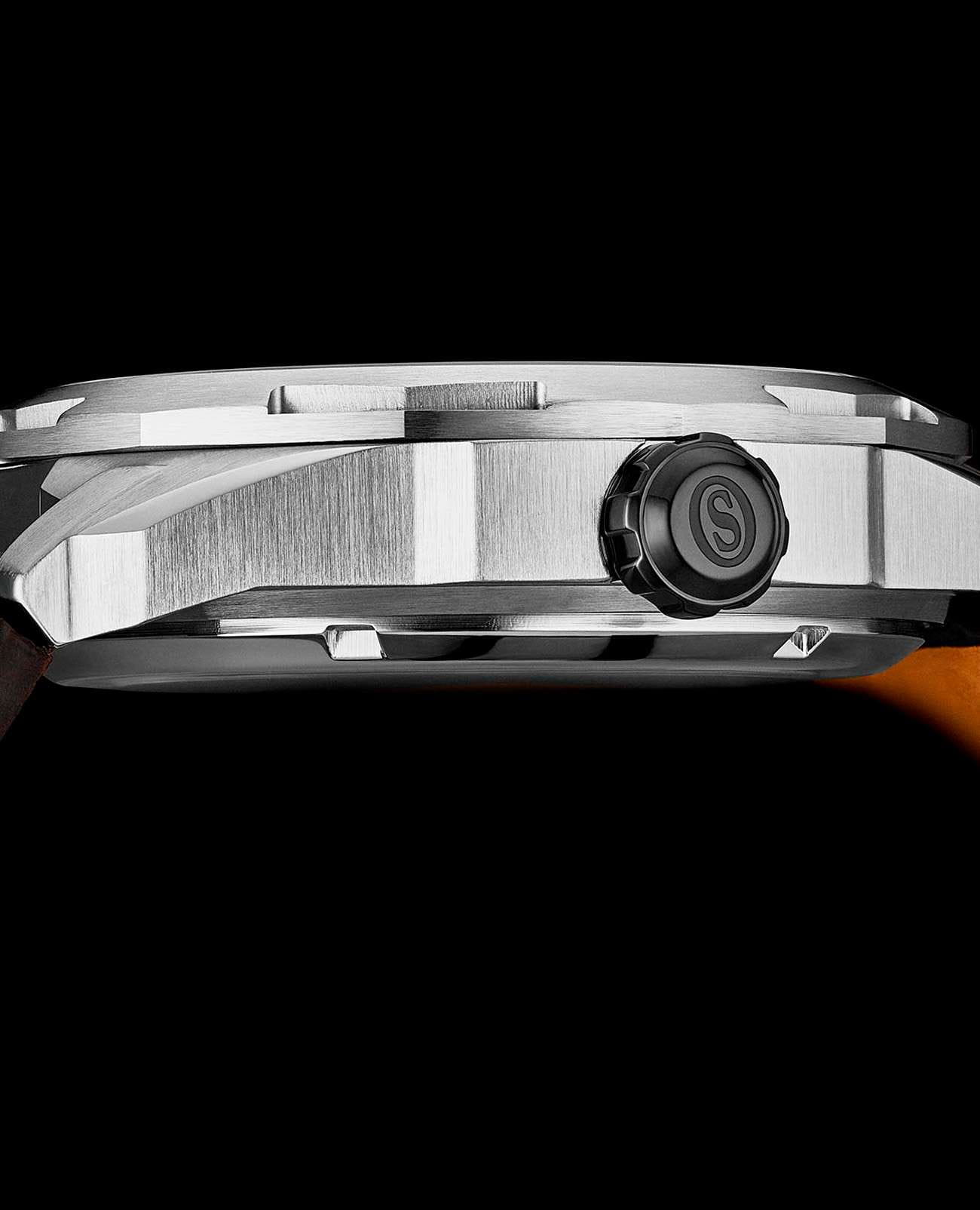 Мужские наручные часы Stuhrling Original 1012.01 сочетают в себе надежность и стильный дизайн, идеально подходящий для активного образа жизни . Модель обладает круглым корпусом диаметром 46 мм, изготовленным из нержавеющей стали, что обеспечивает повышенную устойчивость к внешним воздействиям . Ремешок выполнен из кожи на стандартной застежке, гарантирующей комфортное ношение и безопасность. Скелетонизированный циферблат оснащен люминесцентным покрытиемЛюминесцентное покрытиеПозволяет считывать показания времени в темноте. Производители наносят на стрелки, часовые индексы, безель или поверхность циферблата светонакопительный состав, дающий холодное свечение. стрелок и маркеров, обеспечивающим высокую читаемость даже в условиях плохой видимости под водой . Для защиты циферблата используется стекло KrysternaKrysternaKrysterna — инновационное стекло для наручных часов. Благодаря уникальной структуре, Krysterna объединяет ключевые преимущества двух материалов: твердость сапфира, защищающую от царапин, и гибкость минерального стекла, обеспечивающую устойчивость к деформациям. Такая комбинация делает его идеальным решением для часов, подверженных экстремальным нагрузкам, сохраняя при этом оптическую прозрачность., которое надежно защищает от царапин и механических повреждений. Часы работают на механическом механизме с автоподзаводом, что гарантирует точное время без необходимости ручного завода. Модель предлагает базовые функции: отображение времени и даты, а также водонепроницаемость до 5 атмосфер (50 метров), что позволяет использовать их в повседневных условиях, включая случайные контакты с водой, такие как мытье рук или дождь. Ударопрочный корпус и эргономичный дизайн делают эти часы идеальным выбором для любителей активного отдыха и профессионалов.