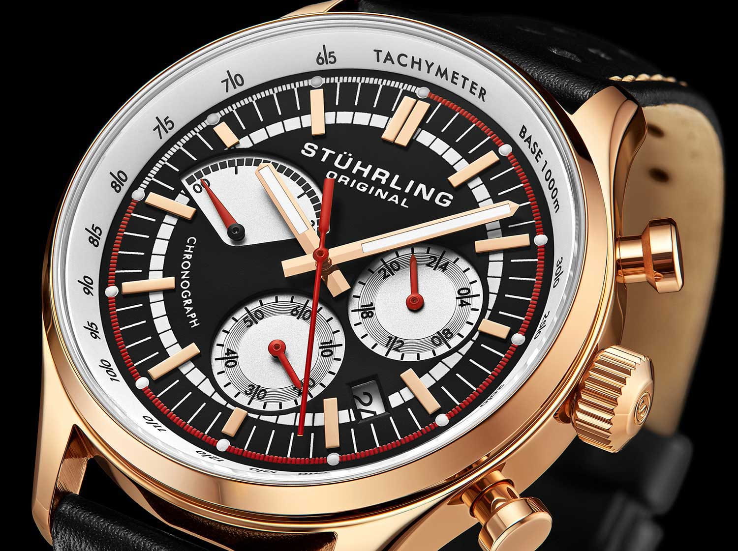 Stuhrling 934.03 — эффектные мужские часы в спортивно-классическом стиле, сочетающие энергичный характер и элегантное исполнение. Корпус с изысканным PVD-покрытиемPVDУльтратонкое покрытие наносится в технике вакуумного напыления, сочетает в себе нитрид титана особой прочности со слоем золота или оксида хрома. Несёт в себе декоративную или защитную функцию. цвета розового золота придаёт модели выразительность и статусный вид. Контрастный чёрный циферблат с белыми счётчиками хронографаХронографФункция позволяет измерять отрезки времени с особой точностью: часы, минуты, секунды. Верным признаком хронографа является наличие на циферблате 3 дополнительных окошек-счётчиков. и акцентами красного цвета создаёт динамичную композицию, а разметка тахиметра добавляет функциональности. Прочное стекло KrysternaKrysternaKrysterna — инновационное стекло для наручных часов. Благодаря уникальной структуре, Krysterna объединяет ключевые преимущества двух материалов: твердость сапфира, защищающую от царапин, и гибкость минерального стекла, обеспечивающую устойчивость к деформациям. Такая комбинация делает его идеальным решением для часов, подверженных экстремальным нагрузкам, сохраняя при этом оптическую прозрачность. защищает поверхность от царапин, сохраняя прозрачность и блеск. Перфорированный кожаный ремень со стандартной застежкой обеспечивает комфорт и спортивный характер образа. Stuhrling — выбор уверенного мужчины, для которого стиль, точность и мощная эстетика идут рука об руку.