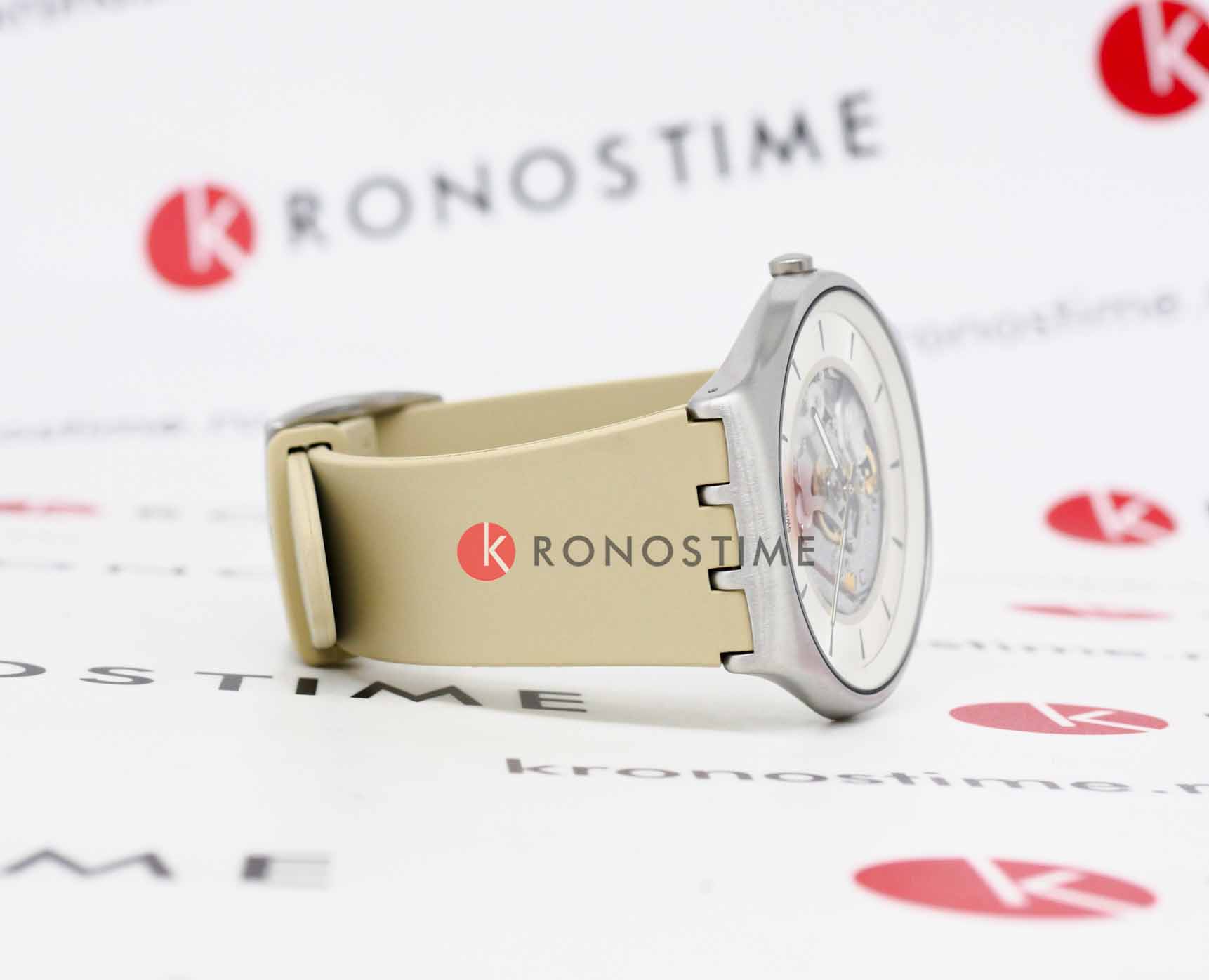Часы Swatch SS07S145 — это стильный и современный аксессуар для тех, кто ценит лёгкость и комфорт. Часы идеально подойдут как для мужчин, так и для женщин. Эти ультратонкие часы имеют открытый серебристый циферблат с радиальной полировкой, серовато-бежевым кольцевым принтом и часовыми индексами черного цвета, а также черные на часовую и минутную стрелки нанесено люминесцентное покрытиеЛюминесцентное покрытиеПозволяет считывать показания времени в темноте. Производители наносят на стрелки, часовые индексы, безель или поверхность циферблата светонакопительный состав, дающий холодное свечение.. Матовый корпус и пряжка из нержавеющей стали прекрасно сочетаются с серовато-бежевым ремешком, дополненным тренчиком в тон. Водозащита 30 метров делает часы практичными для повседневного использования. Эти часы подойдут для повседневного ношения и станут ярким акцентом в вашем наряде.