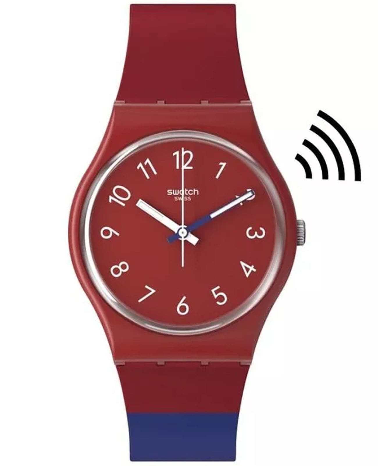 Часы Swatch Gent Biosourced Swatch Pay! SO28R109-5300  — это стильный и современный аксессуар, который идеально подходит для повседневного ношения. Они оснащены красным корпусом из биоматериала и силиконовым ремешком красно-сине-белого цвета. Эти часы поддерживают функцию SwatchPAY!. Циферблат покрыт органическим стеклом из хезалита, устойчивым к царапинам и ударам, что гарантирует долговечность изделия.  Внутри часов установлен надежный кварцевый механизм, который обеспечивает точность хода. Эти часы водонепроницаемы до 30 метров, что позволяет не беспокоиться о случайных брызгах или дождевых каплях. Ремешок часов  выполнен из силикона и имеет регулируемую длину, застежка классическая из алюминия. Swatch SO28R109-5300 — это идеальный выбор для тех, кто ценит сочетание стиля, комфорта и функциональности в одном аксессуаре.