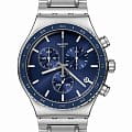 Часы Swatch YVS496G — это стильный и современный аксессуар для тех, кто ценит лёгкость и комфорт. Эта стильная модель часов из нержавеющей стали дополнена матовым металлическим браслетом из нержавеющей стали со съемными звеньями и застёжкой «бабочка»Застёжка "бабочка"Такой вид застёжки дополняется предохранителями, помогающими избежать случайного раскрытия браслета. Обладают изящным исполнением. . Синий циферблат с радиальной полировкой оснащен хронографомХронографФункция позволяет измерять отрезки времени с особой точностью: часы, минуты, секунды. Верным признаком хронографа является наличие на циферблате 3 дополнительных окошек-счётчиков. и светящимися в темноте индексами и стрелками из-за люминесцентного покрытияЛюминесцентное покрытиеПозволяет считывать показания времени в темноте. Производители наносят на стрелки, часовые индексы, безель или поверхность циферблата светонакопительный состав, дающий холодное свечение. заключен в матовый корпус из нержавеющей стали. Завершают образ индикатор даты в положении «4 часа» на циферблате, а также серебристые цифры и индексы на синем безелеБезельВнешний ободок, закрепляющий стекло. В спортивных часах так называется поворотное кольцо с делениями на циферблате, выполняет роль таймера – замеряет отрезки времени на шкале. Неподвижный безель – элемент декора. Однонаправленно вращающийся безель на дайверских часах позволяет фиксировать моменты погружения и выныривания на поверхность. из нержавеющей стали с PVDPVDУльтратонкое покрытие наносится в технике вакуумного напыления, сочетает в себе нитрид титана особой прочности со слоем золота или оксида хрома. Несёт в себе декоративную или защитную функцию. покрытием. Водозащита 30 метров делает часы практичными для повседневного использования. Эти часы подойдут для повседневного ношения и станут ярким акцентом в вашем наряде.