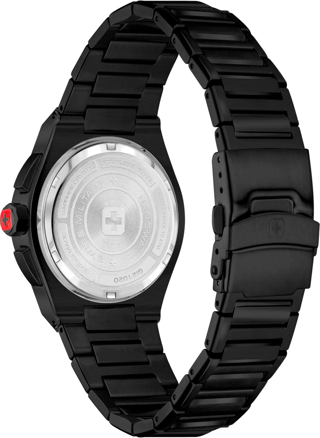 Мужские швейцарские часы-хронографХронографФункция позволяет измерять отрезки времени с особой точностью: часы, минуты, секунды. Верным признаком хронографа является наличие на циферблате 3 дополнительных окошек-счётчиков. Swiss Military Hanowa Aerograph SMWGI2102031, кварцевый механизм с высокой точностью. Сапфировое стеклоСапфировое стеклоПрочный и надёжный материал из кристалла сапфира синтетического происхождения, характеризующийся особой твёрдостью и устойчивостью к царапинам и повреждениям. устойчивое к появлению царапин, обладающее высокой прозрачностью. Класс водозащиты: 100 метров, позволит плавать, нырять и заниматься другими водными видами спорта. Корпус часов изготовлен из стали с IP-покрытиемIP-покрытиеМетод ионного напыления. Демонстрирует повышенную устойчивость к истиранию, окислению и химическим веществам. Под воздействием высокого давления и температуры около 1500°C молекулы металла надёжно соединяются с частицами корпуса часов..