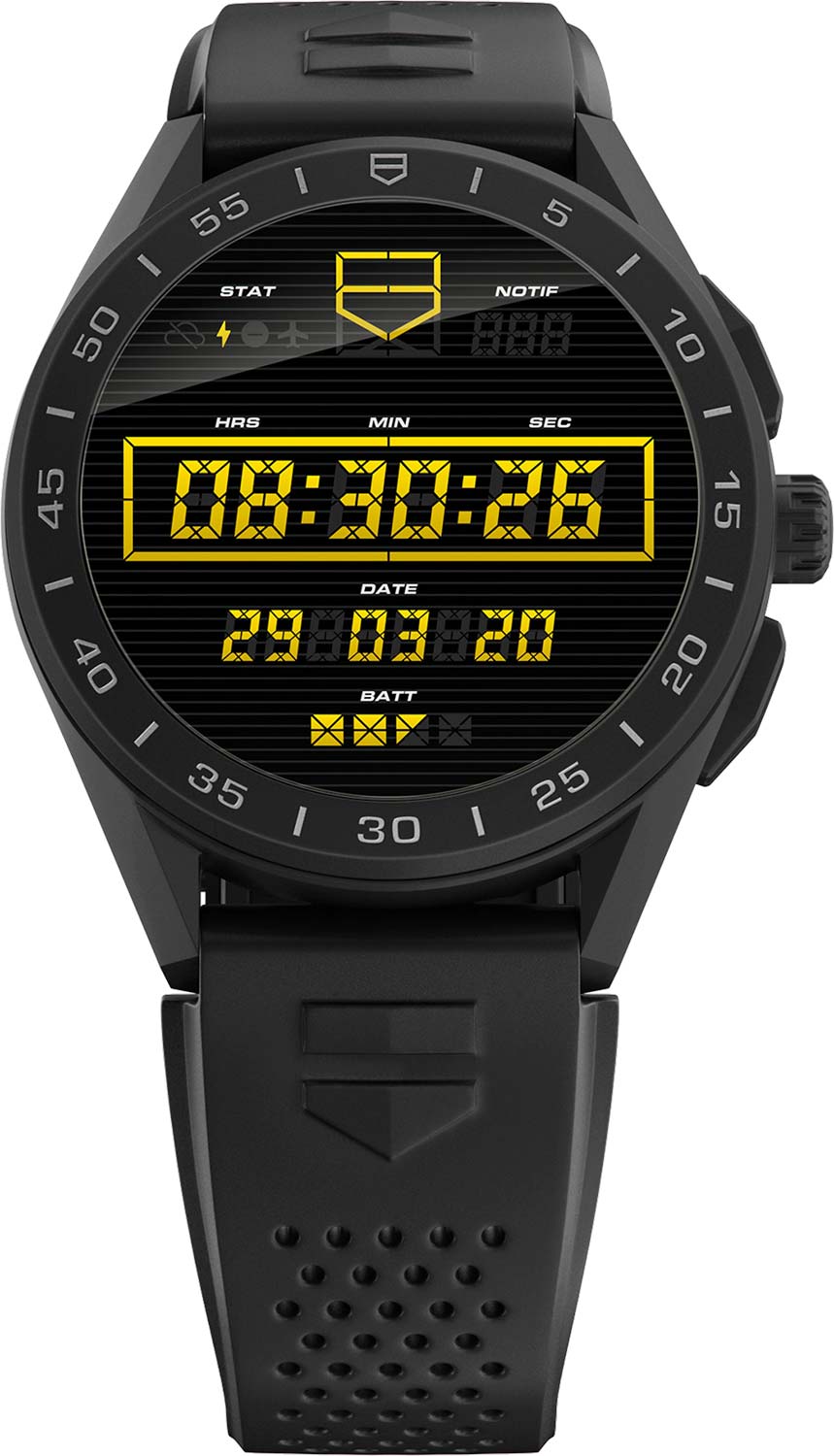 Швейцарские электронные унисекс часы TAG Heuer Connected Calibre E3 - 45 mm SBG8A80.BT6221, электронный механизм с высокой точностью. Сапфировое стекло устойчивое к появлению царапин, обладающее высокой прозрачностью. Класс водозащиты: 50 метров, позволит защитить корпус от случайных брызг или капель дождя. Корпус часов изготовлен из титана, черного цвета.