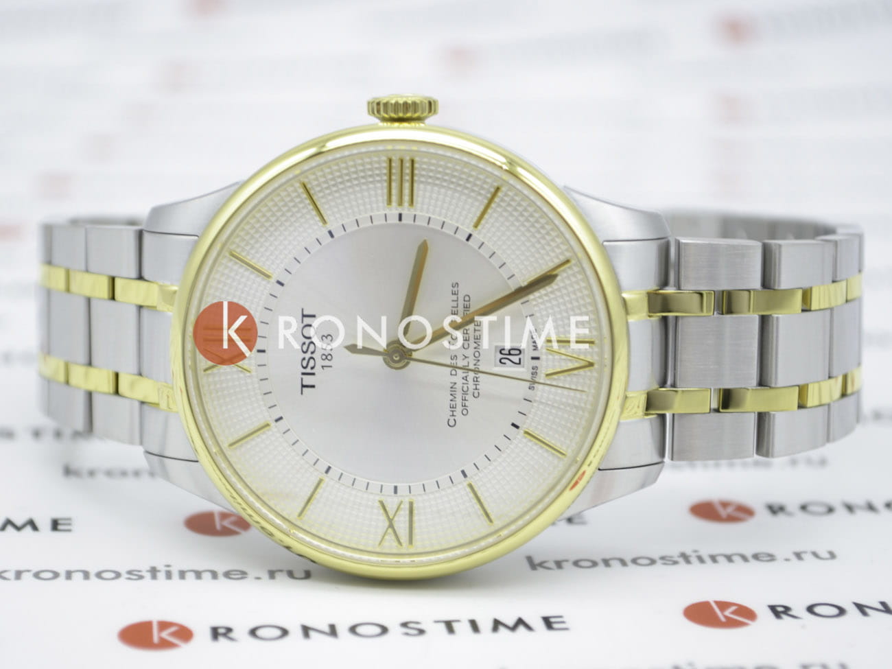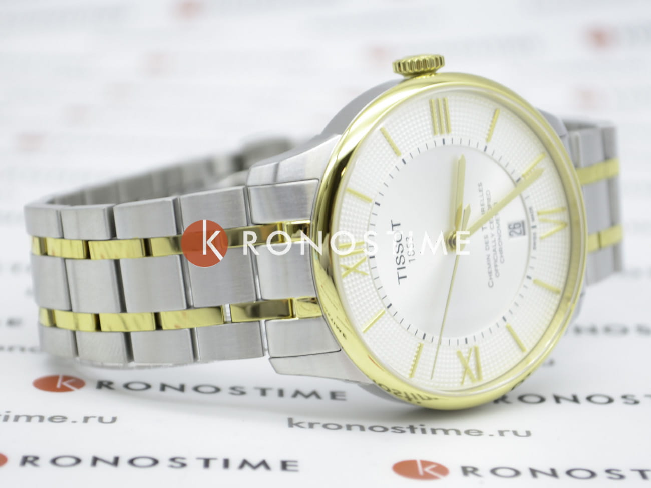 TISSOT T0994082203800 T-Classic Chemin des Tourelles Automatic COSC - мужские механические наручные часы Корпус этих часов среднего размера (42 мм) и выполнен из нержавеющей стали L316 металлического цвета Модель TISSOT T0994082203800 T-Classic Chemin des Tourelles Automatic COSC имеет устойчивое к царапинам сапфировое стекло, браслет из нержавеющей стали с комбинированным PVD-покрытием цвета желтого золота, белый циферблат Калибр механизма: ETA Powermatic 80 Класс водозащиты: 50 м / 5 АТМ (избыточная защита от брызг, допускается кратковременное нахождение в воде) Дополнительные функции и особенности: отображение числа, сертифицированный хронометр COSC, полный запас хода на 80 часов Полная заводская комплектация TISSOT: оригинальные часы, фирменная коробка, инструкция, сервисная книжка, роман о часовой фабрике, миникаталог, замшевый фирменный чехол черного цвета для хранения и/или переноски часов, кассовый и товарный чеки Международная гарантия 2 года