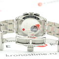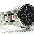 Швейцарские наручные часы оснащены автоматическим калибром ETA C01.211 с запасом хода 45 часов. Брендовый хронографХронографФункция позволяет измерять отрезки времени с особой точностью: часы, минуты, секунды. Верным признаком хронографа является наличие на циферблате 3 дополнительных окошек-счётчиков. с крупным стальным браслетом и чёрным циферблатом привнесёт в образ респектабельность и поможет создать солидный имидж, это идеальный вариант на подарок руководителю крупной компании. Скелетонизированная задняя крышка приглашает понаблюдать за движением деталей механизма. Водонепроницаемость при давлении 10 бар на глубине 100 метров. Опции: дата, секундомер, тахиметрТахиметрРазмеченная шкала, располагается на ободке или безеле часов. Тахиметр позволяет рассчитать скорость на определённом участке пути, расстояние измеряется в километрах или милях.. . Габариты: 43 x 43 x 14,8 мм.