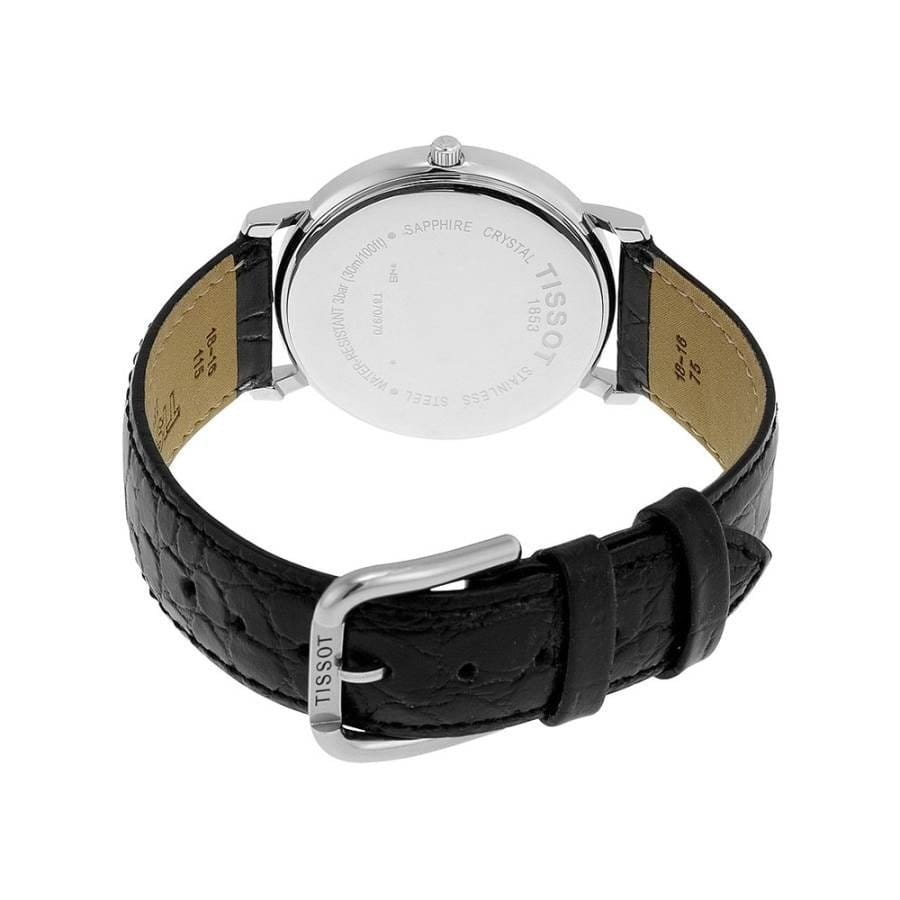 TISSOT T52142113 T-Classic Desire Quartz - мужские кварцевые наручные часы Корпус этих часов небольшого размера (34 мм) и выполнен из нержавеющей стали L316 металлического цвета Модель TISSOT T52142113 T-Classic Desire Quartz имеет устойчивое к царапинам сапфировое стекло, ремешок из натуральной кожи черного цвета, белый циферблат Калибр механизма: ETA F06111 Класс водозащиты: 30 м / 3 АТМ (защита от брызг и случайных капель) Дополнительные функции и особенности: отображение числа Полная заводская комплектация TISSOT: оригинальные часы, фирменная коробка, инструкция, сервисная книжка, роман о часовой фабрике, миникаталог, замшевый фирменный чехол черного цвета для хранения и/или переноски часов, кассовый и товарный чеки Международная гарантия 2 года Производство и сборка: Швейцария