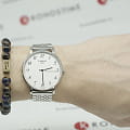 Лаконичный аксессуар в серебристом исполнении и минималистичным циферблатом подойдёт для дополнения делового или повседневного стиля, будет актуальным на долгие годы вперёд. Браслет оригинального плетения сделан из хирургической стали, материал устойчив к коррозии и повреждениям. Кварцевый калибр ETA 902.101. Стекло из сапфира устойчиво к отметинам и царапинам. . Габариты: 38 x 38 x 6,5 мм.