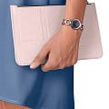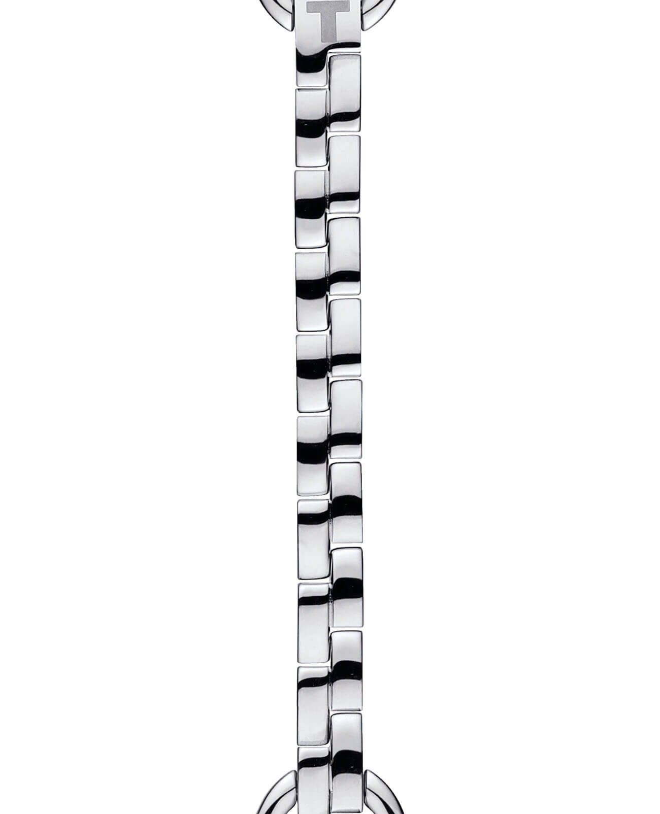Дизайнеры оформили модель оригинальным образом, уделив внимание каждой детали. Тонкий и стильный браслет имеет необычные звенья в виде колец, в качестве материала использовалась нержавеющая сталь 316L. Лаконичный циферблат с чёрным перламутром инкрустирован бриллиантами, гарантировано, что драгоценные камни имеют законное происхождение. Высокоточный кварцевый калибр ETA F03.111. Водонепроницаемость 5 бар. EOLEOLПредставляет собой систему, уведомляющую владельца часов о необходимости замены элемента питания. За 2 недели до полного разряда батарейки секундная стрелка перестаёт ходить чётко и начинает перепрыгивать на 3-4 деления.. Апертура даты. Габариты: 30 x 30 x 6,35 мм.