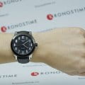 Стильная модель в чёрном цвете станет лучшим дополнением вашего образа, имеет отличительную деталь - блестящий безельБезельВнешний ободок, закрепляющий стекло. В спортивных часах так называется поворотное кольцо с делениями на циферблате, выполняет роль таймера – замеряет отрезки времени на шкале. Неподвижный безель – элемент декора. Однонаправленно вращающийся безель на дайверских часах позволяет фиксировать моменты погружения и выныривания на поверхность. с зубчатым краем. Часы с системой автоматического завода комплектуются швейцарским механизмом SwissmaticSwissmaticШвейцарский автоматический калибр от компании ETA с 3-х дневным запасом хода и 19 камнями в механизме (C15.111), отличается высокой точностью хода. с точностью хода до 72 часов. Прозрачная задняя крышка. Сапфировое стекло. Корпус с чёрным PVD-покрытиемPVDУльтратонкое покрытие наносится в технике вакуумного напыления, сочетает в себе нитрид титана особой прочности со слоем золота или оксида хрома. Несёт в себе декоративную или защитную функцию.. Календарь. Габариты: 44 x 44 x 12,5 мм.