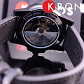 Наручные часы с чёрным ремешком из натуральной кожи - стильная деталь для поддержания солидного имиджа. Привлекательно выглядит блестящий зубчатый безельБезельВнешний ободок, закрепляющий стекло. В спортивных часах так называется поворотное кольцо с делениями на циферблате, выполняет роль таймера – замеряет отрезки времени на шкале. Неподвижный безель – элемент декора. Однонаправленно вращающийся безель на дайверских часах позволяет фиксировать моменты погружения и выныривания на поверхность. в сочетании с узорчатым циферблатом. Внутри корпуса из нержавеющей стали 316L заключён автоматический калибр ETA C15.111 SwissmaticSwissmaticШвейцарский автоматический калибр от компании ETA с 3-х дневным запасом хода и 19 камнями в механизме (C15.111), отличается высокой точностью хода., который отличается запасом хода до 72 часов. Чёрное PVD-покрытиеPVDУльтратонкое покрытие наносится в технике вакуумного напыления, сочетает в себе нитрид титана особой прочности со слоем золота или оксида хрома. Несёт в себе декоративную или защитную функцию.. Сапфировое стекло. Яркая люминесцентная подсветкаЛюминесцентное покрытиеПозволяет считывать показания времени в темноте. Производители наносят на стрелки, часовые индексы, безель или поверхность циферблата светонакопительный состав, дающий холодное свечение.. Прозрачная задняя крышка корпуса. Водостойкость 10 бар. Окошко даты. Габариты: 44 x 44 x 12,5 мм.