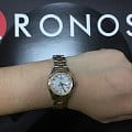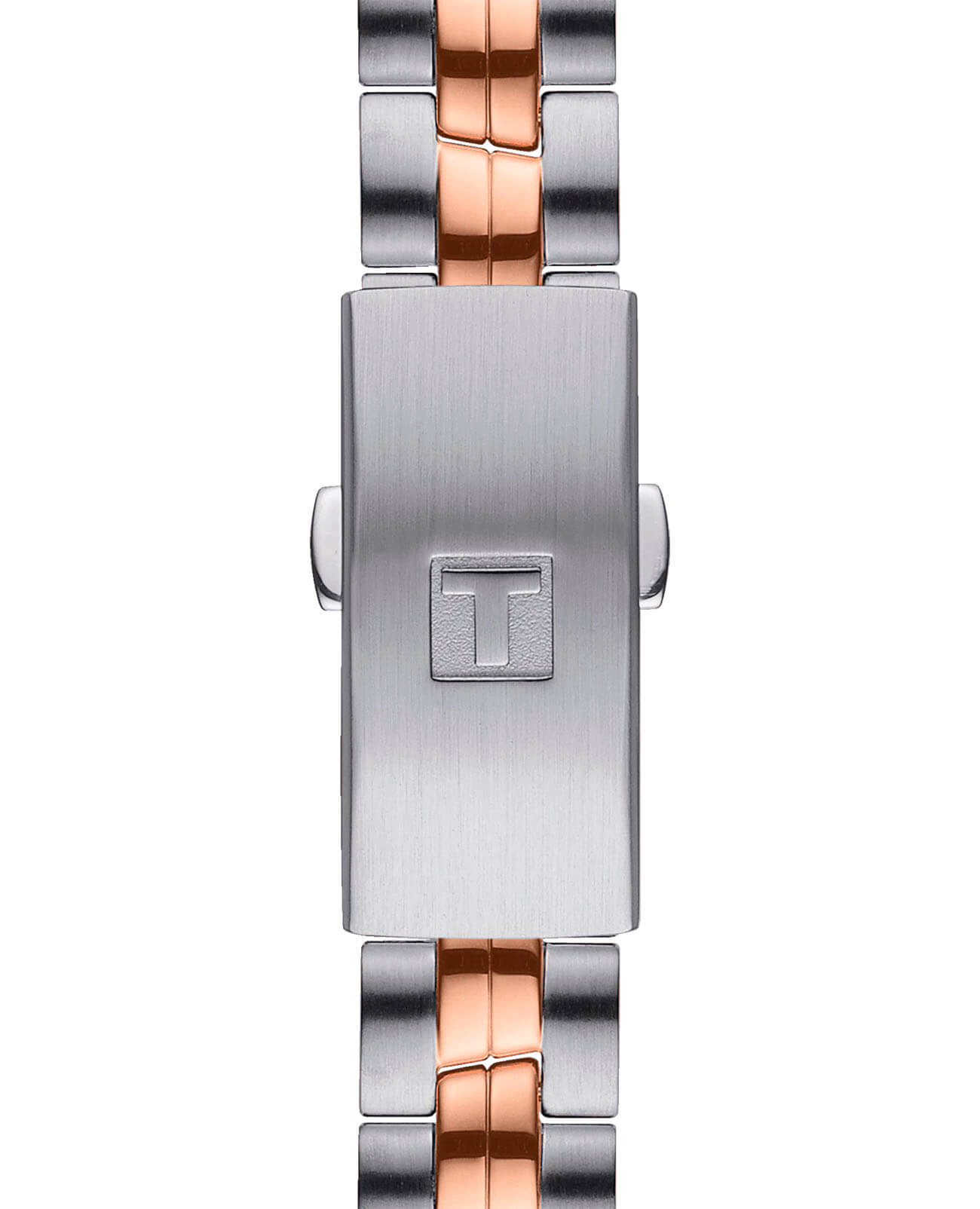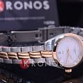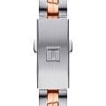 Дизайнеры реализуют свои идеи в оригинальном оформлении браслетов, центральные звенья цвета "розовое золото" приковывают взгляды. Интерес представляет также перламутровый циферблат компактного размера, благодаря этому часы красиво смотрятся на изящном женском запястье. Кварцевый механизм ETA F03.111. PVD-покрытие корпуса и браслета. Водонепроницаемость 100 метров.  Габариты: 25 x 25 x 6,9 мм.