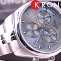 Спортивный кварцевый хронографХронографФункция позволяет измерять отрезки времени с особой точностью: часы, минуты, секунды. Верным признаком хронографа является наличие на циферблате 3 дополнительных окошек-счётчиков. измеряет время с особой точностью, позволяет забыть о необходимости регулярного завода. Стильный циферблат цвета родия имеет контрастные часовые метки, спортивной стилистики добавляют мини-счётчики. Швейцарский кварцевый механизм ETA G10.211 с 4 камнями. Надёжный корпус из нержавеющей стали 316L. Люминесцентная подсветкаЛюминесцентное покрытиеПозволяет считывать показания времени в темноте. Производители наносят на стрелки, часовые индексы, безель или поверхность циферблата светонакопительный состав, дающий холодное свечение.. Сапфировое стекло. Водостойкость 10 бар. Прямоугольное окошко даты, секундомер. Габариты: 41 x 41 x 10,7 мм.
