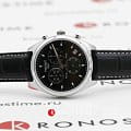Швейцарские наручные часы с хронографом оснащены кварцевым калибром ETA G10.211, модель показывает время с точностью +/- 20 сек/мес. Белые крупные метки и стрелки хорошо выделяются на тёмном циферблате. Люминесцентная подсветка. Корпус из стали с антикоррозионными свойствами. Сапфировое стекло. Габариты: 41 x 41 x 10,7 мм.
