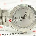 Вместо меток часов использованы бриллианты цвета Top Wesselton с частичной огранкой 8/8, это придаёт модели неповторимое сияние и элегантность. Наручные часы в серебристом исполнении выполнены из нержавеющей стали 316L, это прочный и износоустойчивый материал. Кварцевый калибр ETA 955.412. Сапфировое стекло. Индикация текущей даты. Габариты: 36 x 36 x 9 мм.