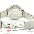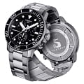 Стильный массивный аксессуар подходит для плавания и глубоководных погружений. Полная герметичность конструкции достигается за счёт завинчивающейся заводной головки и задней крышки, завинчивающихся кнопок. Для модели характерен спортивный броский дизайн, акцент сделан на циферблате чёрного цвета. Кварцевый высокоточный механизм ETA G10.212. Сапфировое стекло с покрытием "антиблик". Задняя крышка с фирменной гравировкой. Удобная застежка с удлинением для дайверов. Габариты: 45,5 x 45,5 x 12,82 мм.
