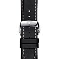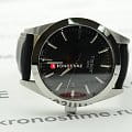 Тёмный ремешок из натуральной кожи и циферблат сочетаются с серебристым оттенком корпуса из хирургической стали. Люминесцентная подсветкаЛюминесцентное покрытиеПозволяет считывать показания времени в темноте. Производители наносят на стрелки, часовые индексы, безель или поверхность циферблата светонакопительный состав, дающий холодное свечение. делает возможным использование часов теперь и в тёмное время суток. Кварцевый высокоточный механизм ETA F06.115. Стекло из сапфира, устойчивое к возникновению царапин и отметин. Апертура даты, индикатор EOLEOLПредставляет собой систему, уведомляющую владельца часов о необходимости замены элемента питания. За 2 недели до полного разряда батарейки секундная стрелка перестаёт ходить чётко и начинает перепрыгивать на 3-4 деления.. Габариты: 40 x 40 x 8,52 мм.