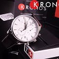 Крупный белый циферблат имеет три дополнительных счётчика хронографаХронографФункция позволяет измерять отрезки времени с особой точностью: часы, минуты, секунды. Верным признаком хронографа является наличие на циферблате 3 дополнительных окошек-счётчиков., что придаёт модели спортивную стилистику. Классический цвет идеально сочетается с тёмно-коричневым ремешком из натуральной кожи, рисунок имитирует кожу крокодила. Часы оснащены кварцевым механизмом ETA G10.211. Сапфировое стекло. Корпус из нержавеющей стали. Секундомер, отображение даты. Габариты: 42 x 42 x 11 мм.