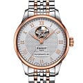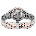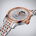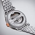 Аксессуар обладает индивидуальными деталями, присущими данной коллекции. Узорчатый циферблат, задняя крышка с причудливым орнаментом, тонкие стрелки и римские цифры. На корпус и продольные звенья браслета нанесено PVD-покрытиеPVDУльтратонкое покрытие наносится в технике вакуумного напыления, сочетает в себе нитрид титана особой прочности со слоем золота или оксида хрома. Несёт в себе декоративную или защитную функцию. цвета розового золота. Автоматический калибр Powermatic 80Powermatic 80Эксклюзивный калибр от швейцарской компании ETA с увеличенным запасом хода до 80 часов за счёт удлинённой заводной пружины. Характеризуется улучшенной системой спуска со сниженным трением. с запасом хода 80 часов. Сапфировое стеклоСапфировое стеклоПрочный и надёжный материал из кристалла сапфира синтетического происхождения, характеризующийся особой твёрдостью и устойчивостью к царапинам и повреждениям. обладающее высокой прозрачностью. Застёжка бабочка с кнопкамиЗастёжка "бабочка"Такой вид застёжки дополняется предохранителями, помогающими избежать случайного раскрытия браслета. Обладают изящным исполнением.