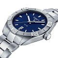 Мужской спортивный хронограф из коллекции PR 100 Sport Gent имеет циферблат синего цвета. Часы оснащены швейцарским кварцевым механизмом ETA F06.115. Корпус и браслет серебристого оттенка выполнены из нержавеющей стали, отличающейся своими долговечными и ударопрочными свойствами. Сапфировое стекло устойчиво к появлению царапин. Водозащита WR 100. Производство и сборка: Швейцария.