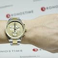 Мужской хронографХронографФункция позволяет измерять отрезки времени с особой точностью: часы, минуты, секунды. Верным признаком хронографа является наличие на циферблате 3 дополнительных окошек-счётчиков. не только позволяет измерять временные промежутки с особой точностью, но и выполняет роль элегантного аксессуара. Циферблат цвета шампань сразу бросается в глаза, три дополнительных счётчика привносят в общий облик модели спортивный стиль. Наручные часы изготовлены из нержавеющей стали с PVD-покрытиемPVDУльтратонкое покрытие наносится в технике вакуумного напыления, сочетает в себе нитрид титана особой прочности со слоем золота или оксида хрома. Несёт в себе декоративную или защитную функцию., тяжесть материала приятно ощущается на запястье и не доставляет неудобств. Кварцевый механизм ETA G10.212. Люминесцентная подсветка. Высокие показатели водозащиты. Габариты: 45 x 45 x 11 мм. Производство и сборка: Швейцария.