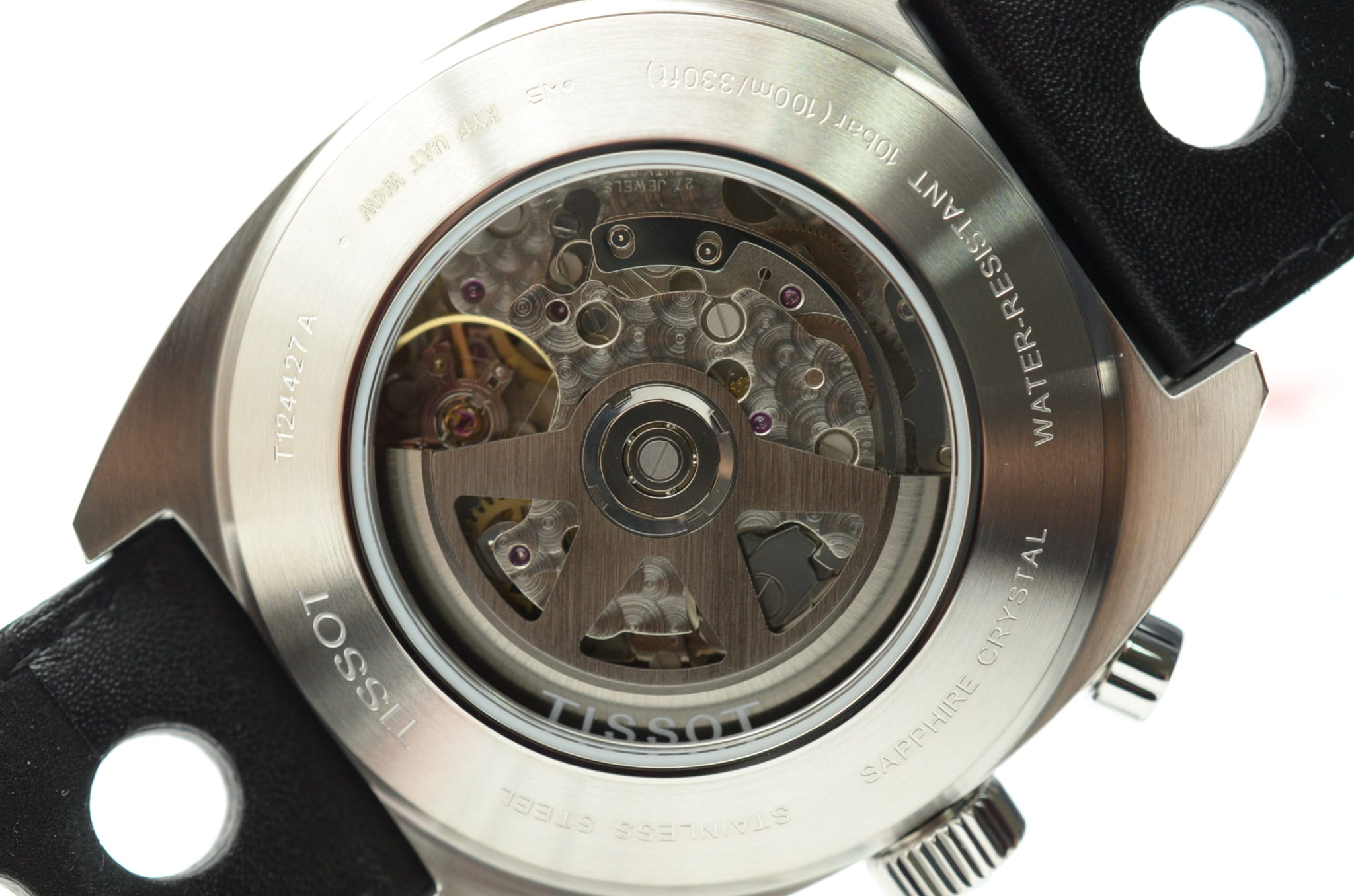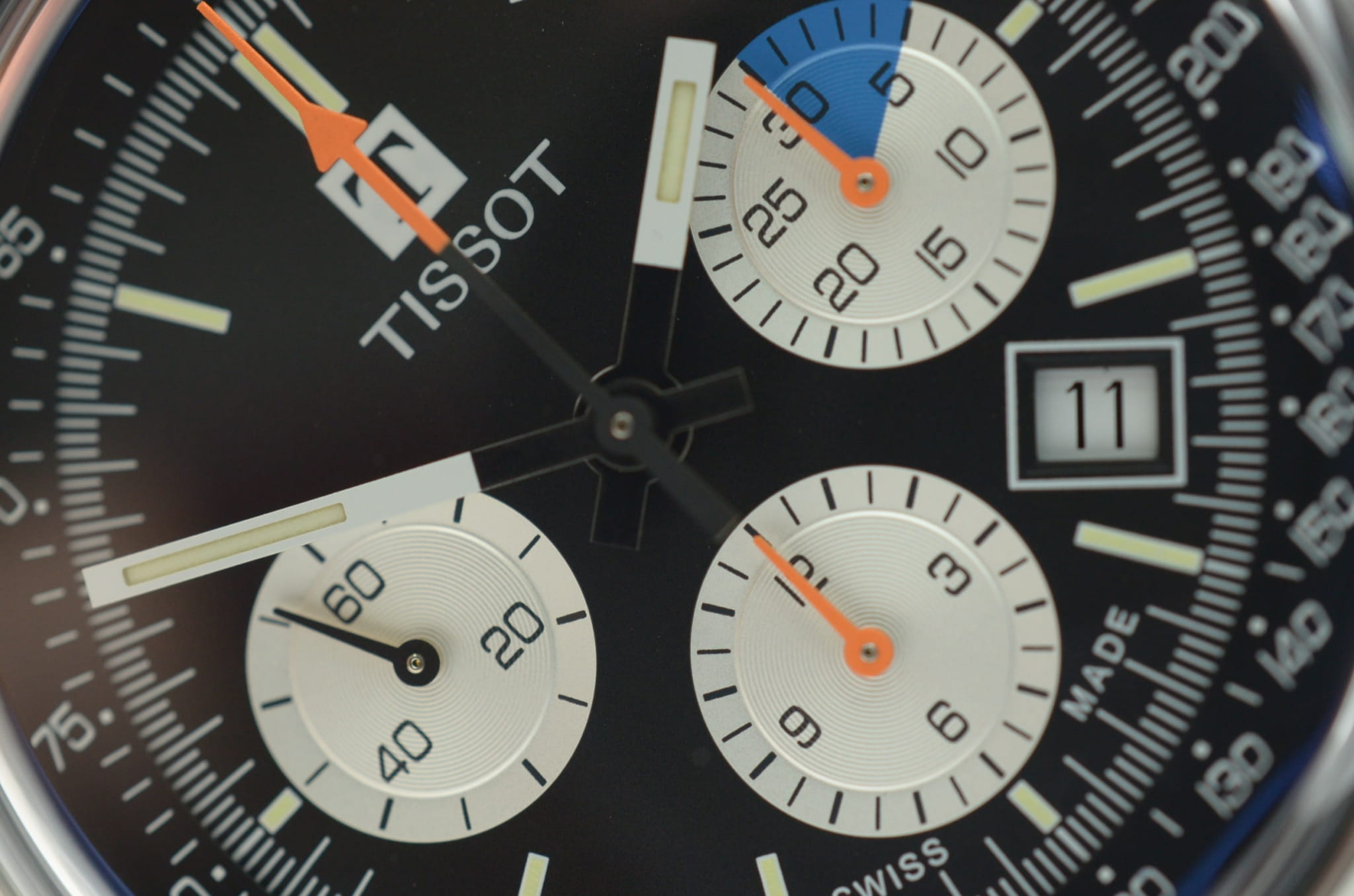 Наручные часы с оранжевыми деталями возрождают аксессуар Tissot Navigator 1973 года, спортивный хронографХронографФункция позволяет измерять отрезки времени с особой точностью: часы, минуты, секунды. Верным признаком хронографа является наличие на циферблате 3 дополнительных окошек-счётчиков. символизирует историческое партнёрство швейцарского бренда и автогоночной команды Kessel Classics. Модель выполнена в винтажном стиле, практически весь корпус матовый, исключение составляет передняя скошенная полированная поверхность. Часы оснащаются престижным автоматическим механизмом Valjoux 7753 с запасом хода 48 часов и отделкой ротора женевские волны. Прозрачная задняя крышка. Чёрный ремешок с перфорацией из натуральной кожи. . Стекло из сапфира с антибликовой поверхностью. Секундомер, отображение числа. Габариты: 46,6 x 43 x 14,8 мм.