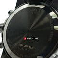 Современный хронографХронографФункция позволяет измерять отрезки времени с особой точностью: часы, минуты, секунды. Верным признаком хронографа является наличие на циферблате 3 дополнительных окошек-счётчиков. поможет подчеркнуть продуманный образ делового мужчины. Модель выполнена в чёрной-белой расцветке. Наручные часы функционируют благодаря швейцарскому кварцевому механизму ETA G10.212. Калибр отличается максимальной точностью хода. Стекло из сапфира. Водостойкость 100 метров. Надёжный корпус из антикоррозионной стали 316L с чёрным PVD-покрытиемPVDУльтратонкое покрытие наносится в технике вакуумного напыления, сочетает в себе нитрид титана особой прочности со слоем золота или оксида хрома. Несёт в себе декоративную или защитную функцию.. Люминесцентная подсветкаЛюминесцентное покрытиеПозволяет считывать показания времени в темноте. Производители наносят на стрелки, часовые индексы, безель или поверхность циферблата светонакопительный состав, дающий холодное свечение. стрелок и индексов. Секундомер, отображение даты. Диаметр корпуса: 45,5 мм.