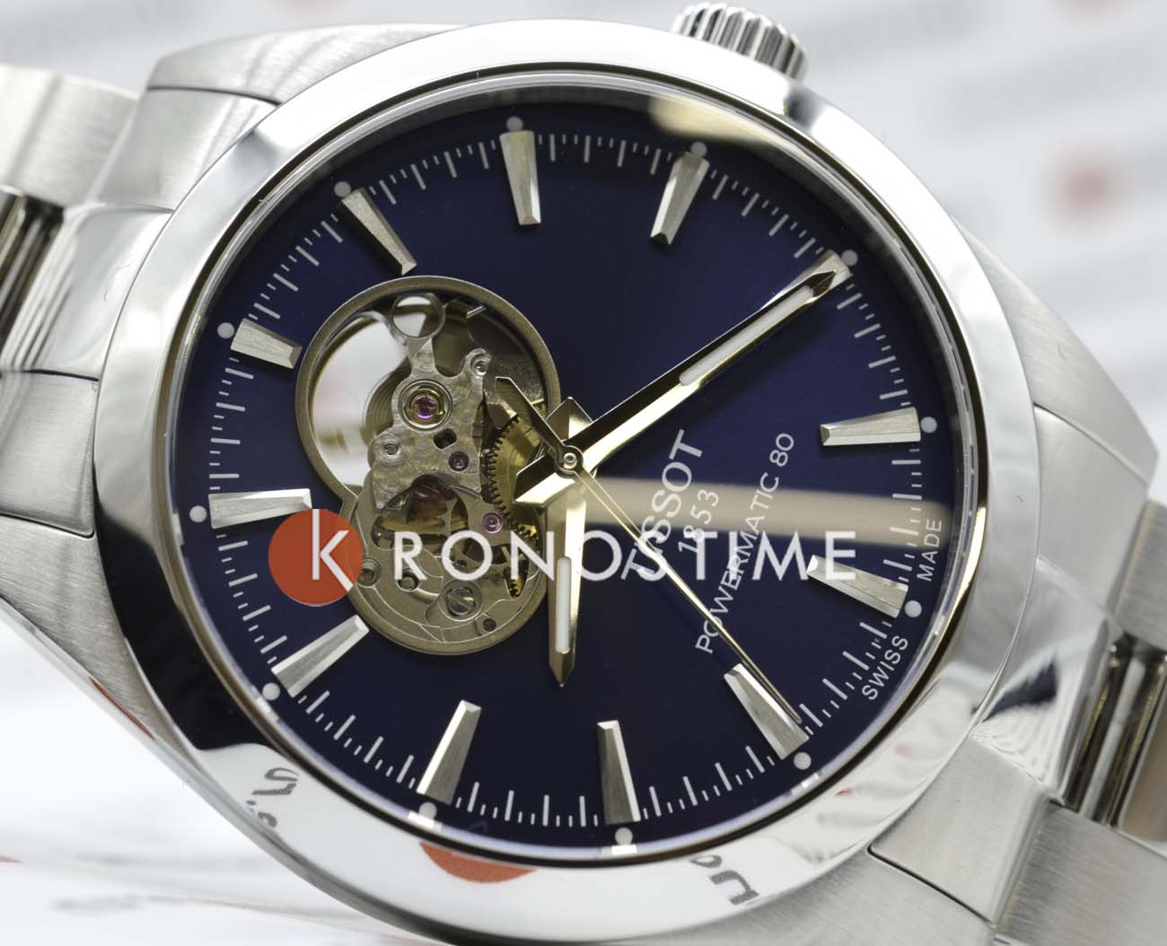 Швейцарские мужские механические часы Tissot Gentleman Powermatic 80 Open Heart T127.407.11.041.01