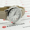 Модель представлена в минималистичном исполнении. Точность хода швейцарского кварцевого механизма ETA F04.115 составляет +/- 20 секунд в месяц. Сапфировое стекло устойчиво к появлению царапин. Ремешок выполнен из натуральной кожи. Часы сохраняют водостойкость при давлении 5 бар. никогда не расстегнётся случайным образом. Функции: календарь, EOLEOLПредставляет собой систему, уведомляющую владельца часов о необходимости замены элемента питания. За 2 недели до полного разряда батарейки секундная стрелка перестаёт ходить чётко и начинает перепрыгивать на 3-4 деления..