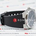 Корпус часов изготовлен из нержавеющей стали марки 316 серебристого цвета. Устойчивое к появлению царапин сапфировое стеклоСапфировое стеклоПрочный и надёжный материал из кристалла сапфира синтетического происхождения, характеризующийся особой твёрдостью и устойчивостью к царапинам и повреждениям. с антибликовым покрытием. Класс водозащиты: 100 метров, позволит плавать, нырять и заниматься другими водными видами спорта. Стрелки и метки покрыты люминесцентным покрытиемЛюминесцентное покрытиеПозволяет считывать показания времени в темноте. Производители наносят на стрелки, часовые индексы, безель или поверхность циферблата светонакопительный состав, дающий холодное свечение. Силиконовый ремешок черного цвета с классической застежкой.