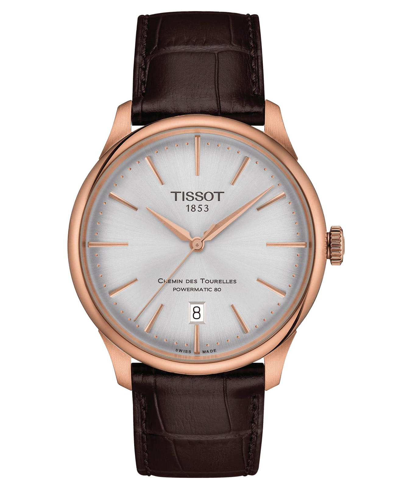 Мужские наручные часы из серии Chemin des Tourelles Powermatic 80 воспевают часовое искусство Tissot, они помогут придать образу эксклюзивный облик.