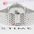 Кварцевый механизм с высокой точностью. Сапфировое стеклоСапфировое стеклоПрочный и надёжный материал из кристалла сапфира синтетического происхождения, характеризующийся особой твёрдостью и устойчивостью к царапинам и повреждениям. устойчивое к появлению царапин, обладающее высокой прозрачностью. Стрелки с люминесцентным покрытиемЛюминесцентное покрытиеПозволяет считывать показания времени в темноте. Производители наносят на стрелки, часовые индексы, безель или поверхность циферблата светонакопительный состав, дающий холодное свечение.. Класс водозащиты: 50 метров, позволит защитить корпус от случайных брызг или капель дождя. Корпус часов изготовлен из нержавеющей стали. Браслет с застёжкой «бабочка» с кнопкамиЗастёжка "бабочка"Такой вид застёжки дополняется предохранителями, помогающими избежать случайного раскрытия браслета. Обладают изящным исполнением. .