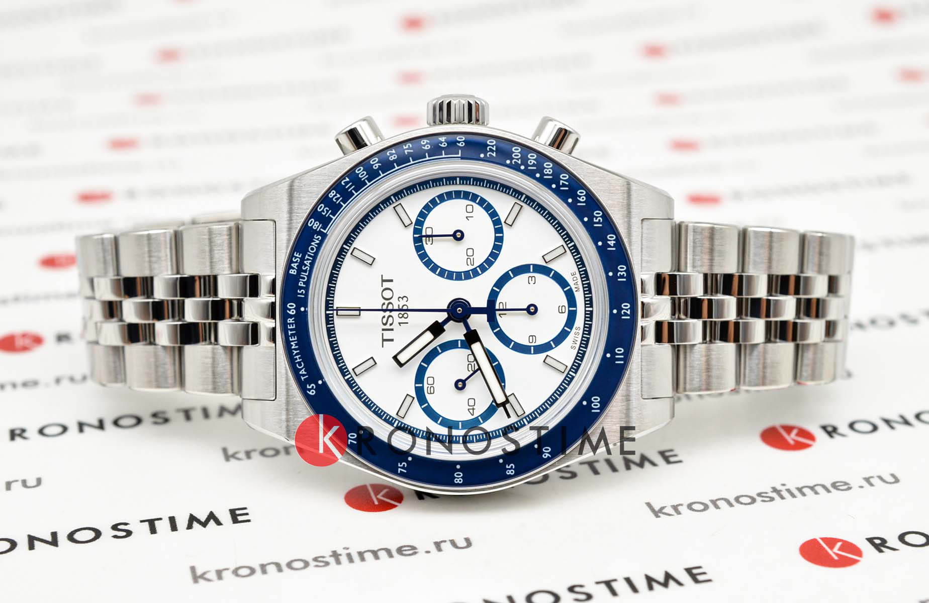 Tissot PR516 Automatic Chronograph T149.462.11.011.00 – элегантные мужские часы, вдохновлённые автоспортом 1960-х годов. Корпус диаметром 41 мм и толщиной 14,19 мм выполнен из нержавеющей стали 316L, обеспечивая прочность и долговечность. Белый циферблат с синими акцентами защищён сапфировым стекломСапфировое стеклоПрочный и надёжный материал из кристалла сапфира синтетического происхождения, характеризующийся особой твёрдостью и устойчивостью к царапинам и повреждениям. с антибликовым покрытиемАнтибликовое покрытиеСлой оксида металла в 0,13-0,3 микрон, благодаря которому стекло часов не бликует и не отражает свет. Антибликовое покрытие уменьшает отражение света в 10 раз, обеспечивая отличную читаемость показателей циферблата., устойчивым к царапинам. Прозрачная задняя крышка позволяет наблюдать за работой механизма. Часы оснащены швейцарским автоматическим хронографомХронографФункция позволяет измерять отрезки времени с особой точностью: часы, минуты, секунды. Верным признаком хронографа является наличие на циферблате 3 дополнительных окошек-счётчиков. ETA A05.231, основанным на ValjouxValjouxПремиальный калибр от швейцарской компании ETA c уникальной отделкой механизма. Отличается увеличенным запасом хода от 45 до 60 часов, в зависимости от калибра, точность хода составляет +/- 5 секунд в сутки. 7753, с запасом хода до 68 часов. Функциональность включает центральную секундную стрелку хронографа, 30-минутный и 12-часовой счётчики, а также тахиметрическую и пульсометристскую шкалы на безелеБезельВнешний ободок, закрепляющий стекло. В спортивных часах так называется поворотное кольцо с делениями на циферблате, выполняет роль таймера – замеряет отрезки времени на шкале. Неподвижный безель – элемент декора. Однонаправленно вращающийся безель на дайверских часах позволяет фиксировать моменты погружения и выныривания на поверхность.. Индексы и стрелки покрыты люминесцентным покрытиемЛюминесцентное покрытиеПозволяет считывать показания времени в темноте. Производители наносят на стрелки, часовые индексы, безель или поверхность циферблата светонакопительный состав, дающий холодное свечение. Super-LumiNova®, обеспечивающим отличную читаемость в условиях низкой освещённости. Браслет из нержавеющей стали оснащён системой быстрой замены и застёжка «бабочка» с кнопкамиЗастёжка "бабочка"Такой вид застёжки дополняется предохранителями, помогающими избежать случайного раскрытия браслета. Обладают изящным исполнением. , обеспечивающая комфортное ношение и надёжную фиксацию на запястье. Водозащита до 100 метров (10 бар) позволяет использовать часы во время плавания и других водных видов спорта.
