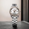 . Он декорирован 60 бриллиантами в 0,39 карат, оттенок - Top Wesselton. Внутри стального корпуса заключён швейцарский автоматический механизм ETA Powermatic 48.111 с 48-часовым резервом хода. Калибр имеет отделку волнообразными узорами, оценить часовое мастерство можно сквозь прозрачную заднюю крышку. Циферблат защищён сапфировым стеклом, устойчивым к появлению царапин. Сохраняется водостойкость при давлении до 5 бар. Календарь позволяет облегчить решение ваших повседневных дел. Габариты: 29 x 29 x 10,4 мм.