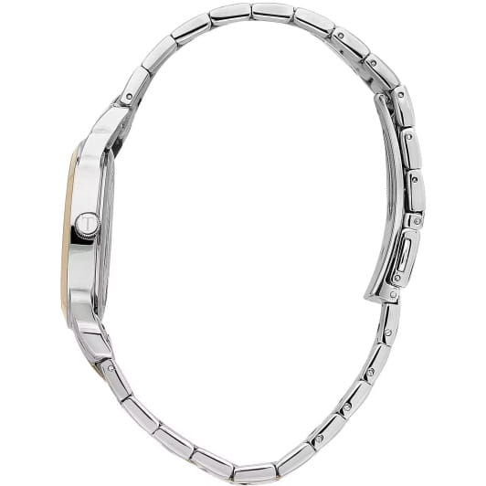 Итальянские женские часы Trussardi T-Bent R2453141503 - это стильный женский аксессуар, который сочетает элегантный дизайн и практичность. Корпус выполнен из нержавеющей стали с безелемБезельВнешний ободок, закрепляющий стекло. В спортивных часах так называется поворотное кольцо с делениями на циферблате, выполняет роль таймера – замеряет отрезки времени на шкале. Неподвижный безель – элемент декора. Однонаправленно вращающийся безель на дайверских часах позволяет фиксировать моменты погружения и выныривания на поверхность. с IP-покрытиемIP-покрытиеМетод ионного напыления. Демонстрирует повышенную устойчивость к истиранию, окислению и химическим веществам. Под воздействием высокого давления и температуры около 1500°C молекулы металла надёжно соединяются с частицами корпуса часов. , что обеспечивает долговечность и утончённый внешний вид. Надежное минеральное стеклоМинеральное стеклоМинеральное стекло представляет собой искусственно выращенный минерал кварца. Такое стекло отличается особой устойчивостью к повреждениям и царапинам. Уступает по некоторым качествам сапфировому стеклу. защищает циферблат от царапин и обеспечивает долговечность. Модель оснащена кварцевым механизмом, обеспечивающим высокую точность хода. Браслет из нержавеющей стали с частичным IP-покрытиемIP-покрытиеМетод ионного напыления. Демонстрирует повышенную устойчивость к истиранию, окислению и химическим веществам. Под воздействием высокого давления и температуры около 1500°C молекулы металла надёжно соединяются с частицами корпуса часов. на раскладной застёжкеРаскладная застёжкаТакой тип застёжки используется только на браслетах из металла. Она никогда не раскрывается полностью, происходит разделение на 2 и более частей. Раскладывающая застёжка снизит вероятность потери часов к минимуму. обеспечивает комфортное ношение. Водозащита 50 метров позволит защитить корпус от случайных брызг или капель дождя. Эта модель – отличный выбор для тех, кто ищет сочетание стиля, качества и функциональности. Часы станут не только полезным аксессуаром, но и выразительным элементом вашего имиджа.