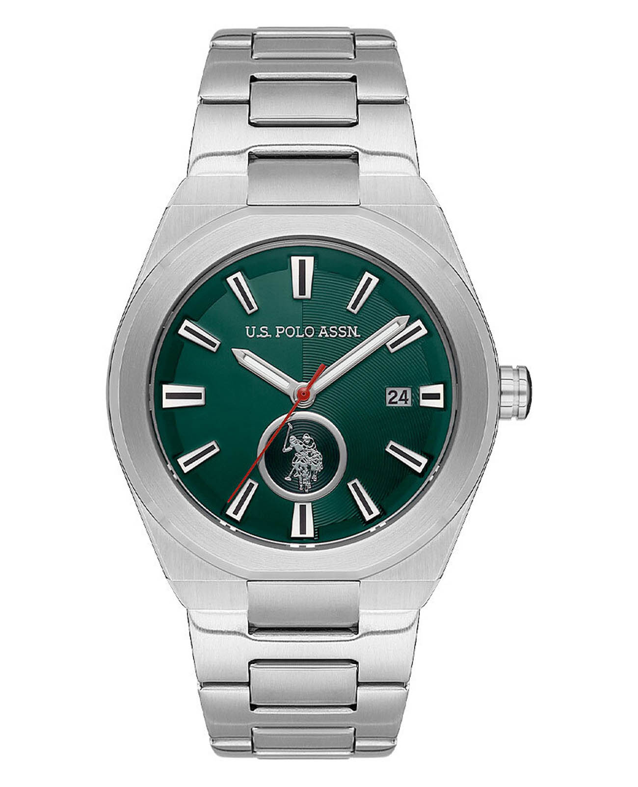 Мужские часы U.S. Polo Assn. Fundamental USPA1062-04, кварцевый механизм с высокой точностью. Минеральное стеклоМинеральное стеклоМинеральное стекло представляет собой искусственно выращенный минерал кварца. Такое стекло отличается особой устойчивостью к повреждениям и царапинам. Уступает по некоторым качествам сапфировому стеклу. устойчивое к появлению царапин, обладающее высокой прозрачностью. Корпус изготовлен из нержавеющей стали. Центральные часовая, минутная и секундная стрелки. Окошко даты находится в положении 3 часа. Стрелки с люминесцентным покрытиемЛюминесцентное покрытиеПозволяет считывать показания времени в темноте. Производители наносят на стрелки, часовые индексы, безель или поверхность циферблата светонакопительный состав, дающий холодное свечение.. Класс водозащиты: 50 метров, позволит защитить корпус от случайных брызг или капель дождя. Стальной браслет на раскладной застёжкеРаскладная застёжкаТакой тип застёжки используется только на браслетах из металла. Она никогда не раскрывается полностью, происходит разделение на 2 и более частей. Раскладывающая застёжка снизит вероятность потери часов к минимуму..